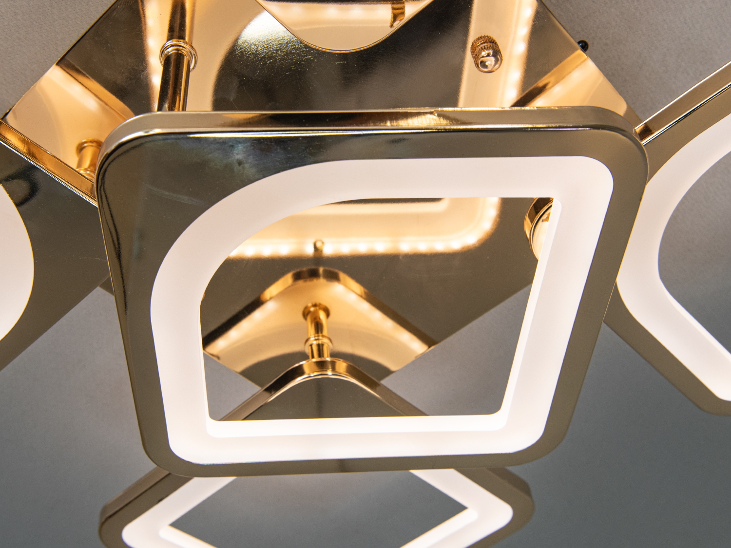 Світлодіодна люстра з квадратами для коридору, золото, 72 Вт, 10 м2 S8060/4+1G