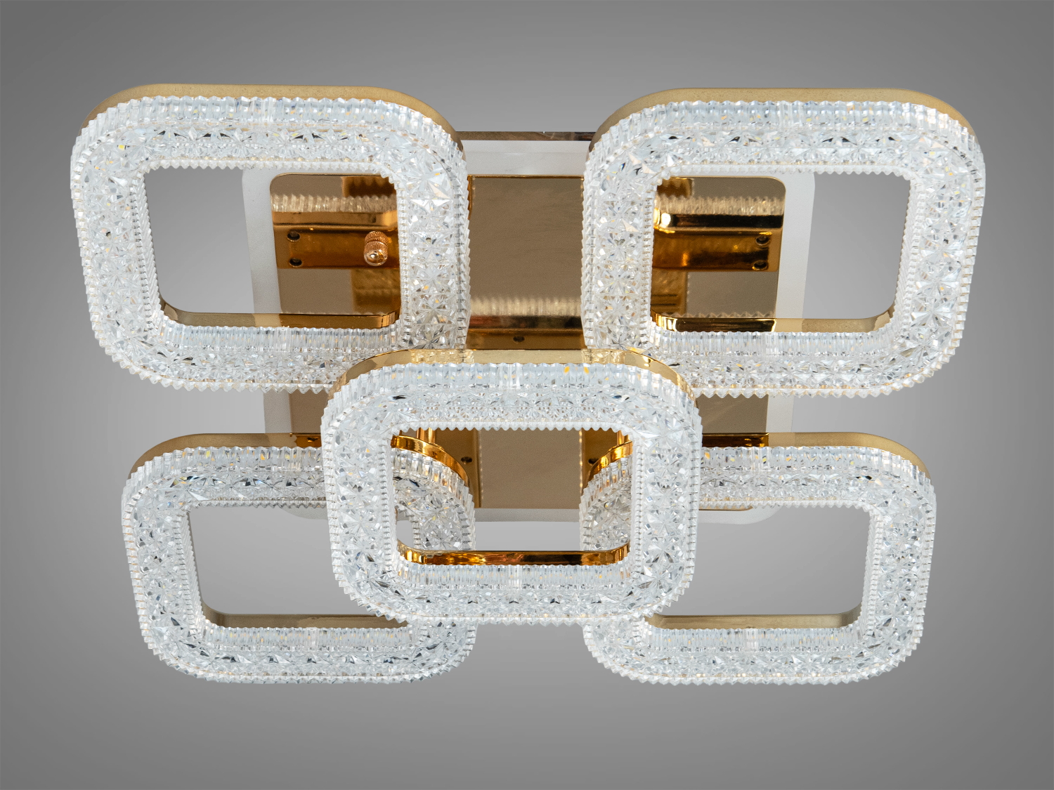 Стельова світлодіодна люстра з пультом, золото, 65W для спальні S2205/4+1G LED 3color dimmer