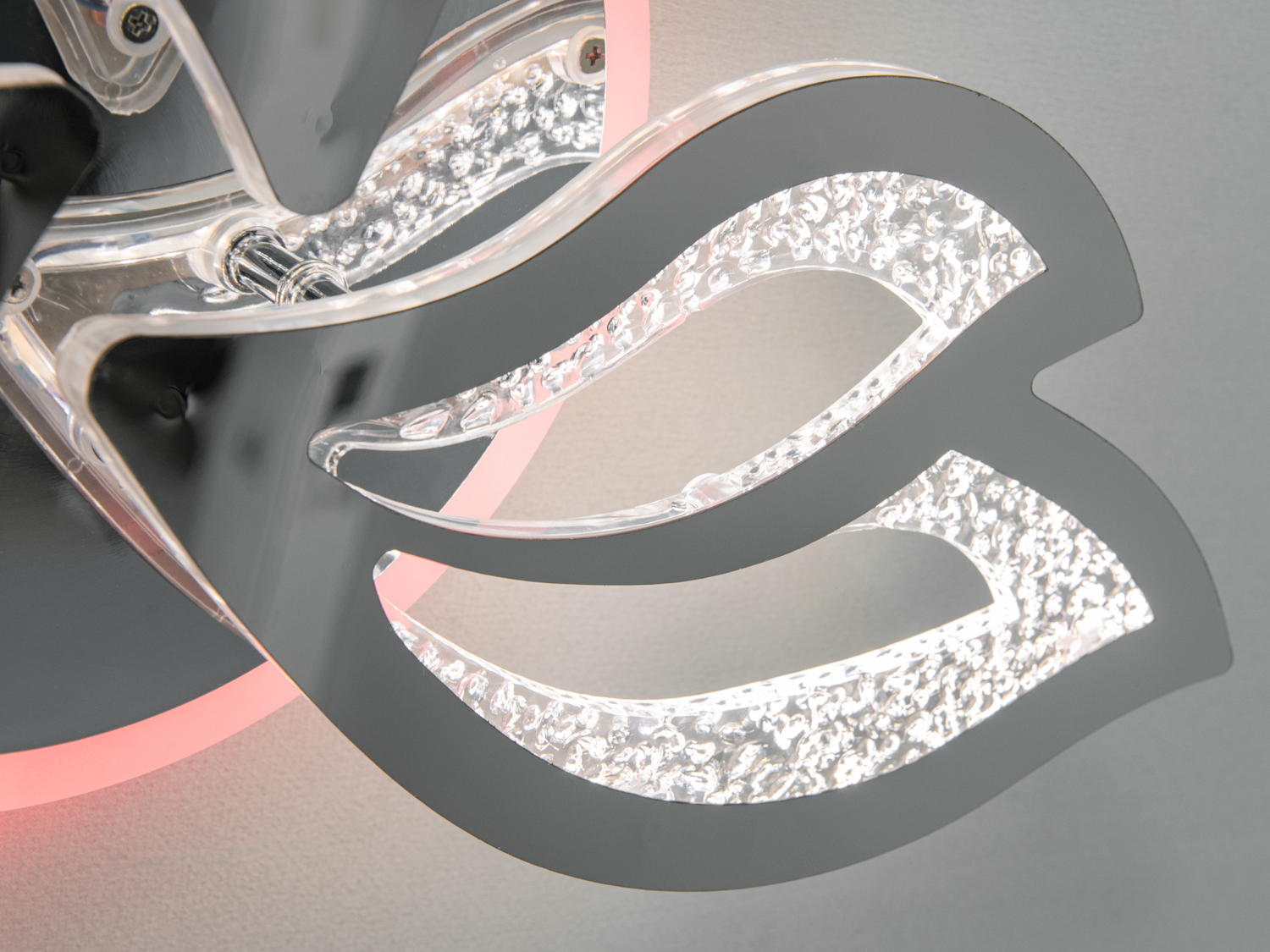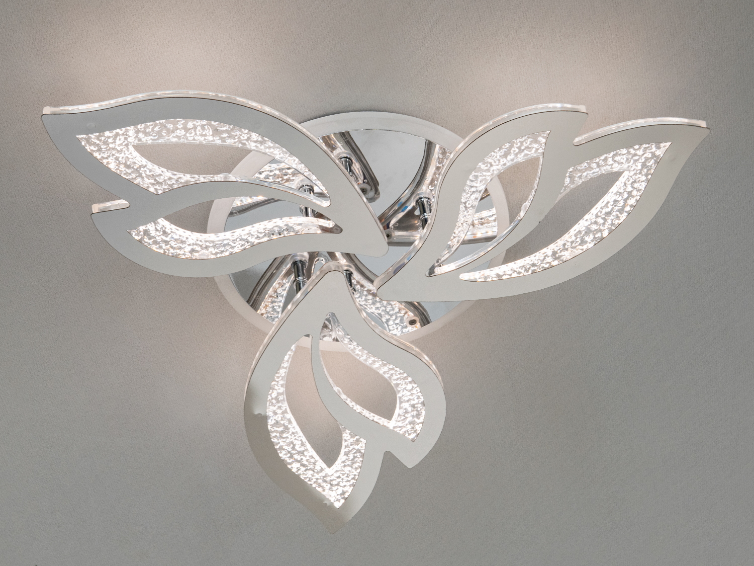Елегантна світлодіодна люстра стане прекрасним доповненням вашого інтер'єру. Витончені лінії та пелюсткоподібні елементи створюють унікальний ефект легкості. Колір хром у поєднанні з акриловими елементами підкреслює сучасний стиль і універсальність.