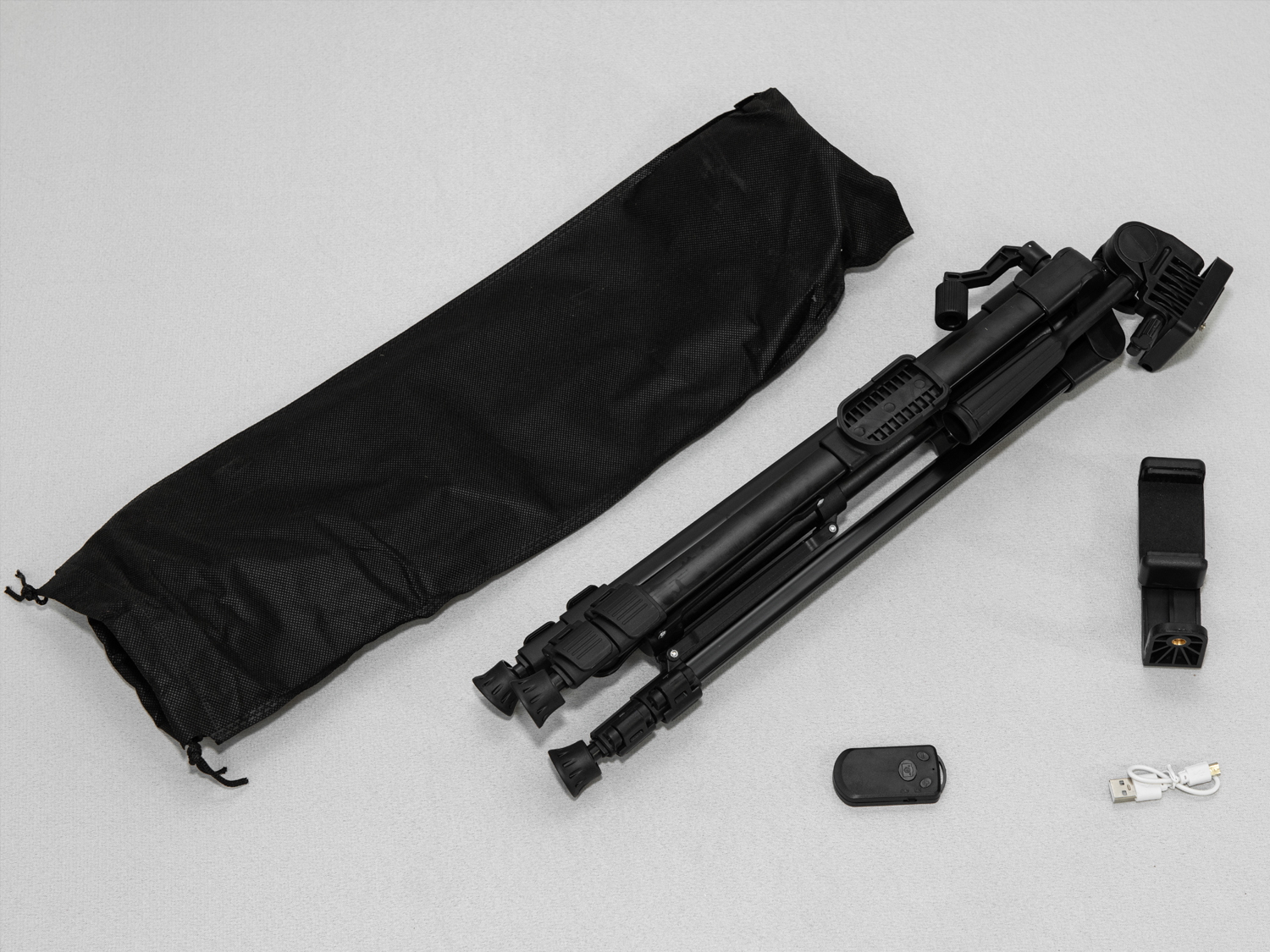 Широка база опор забезпечує стійкість навіть у разі використання важкого обладнання, а гак для противаги додає додаткової стабільності. Універсальний тримач для телефона дає змогу використовувати штатив із будь-яким сучасним смартфоном.