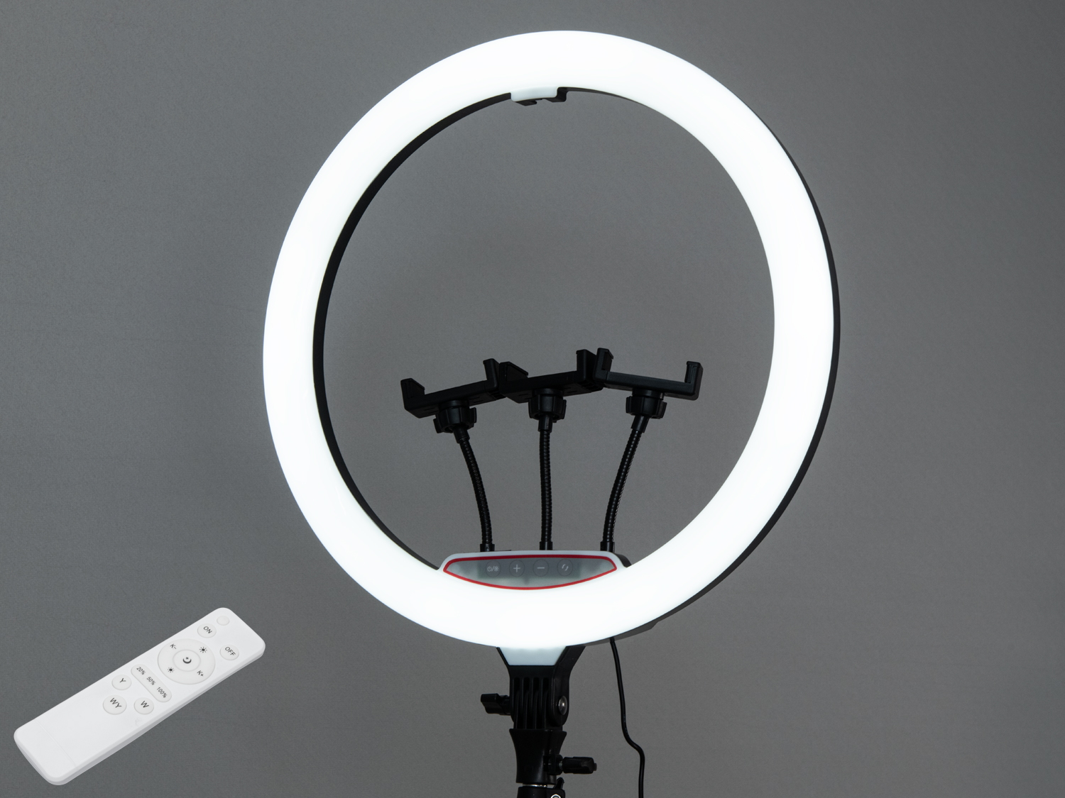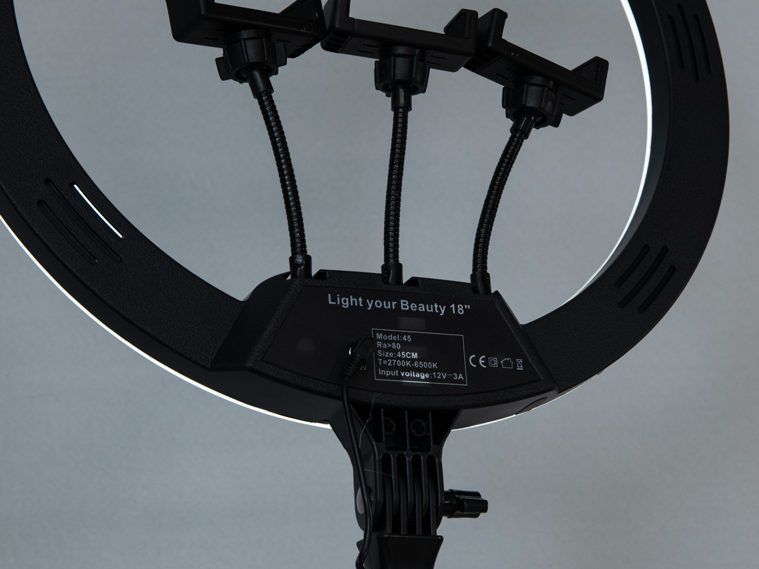 Лампа оснащена трьома тримачами для смартфонів, що дозволяє знімати з різних ракурсів одночасно. Сумісність з більшістю сучасних моделей телефонів робить її універсальною для кожного користувача.