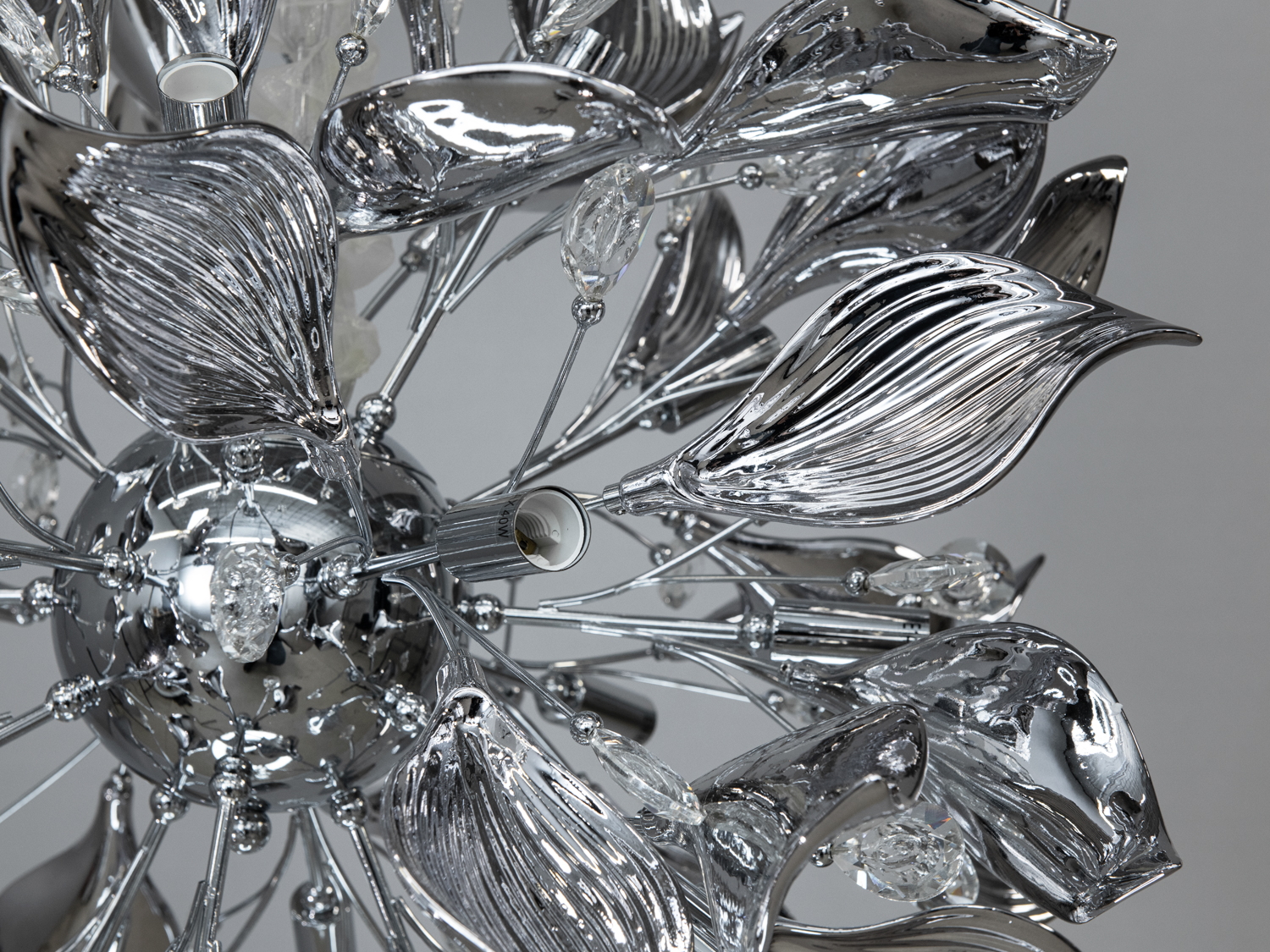 Ця люстра підходить для інтер'єрів у стилі модерн, ар-деко або класика. Квіткові мотиви додають нотки романтичності та природності, підкреслюючи благородство і легкість приміщення.