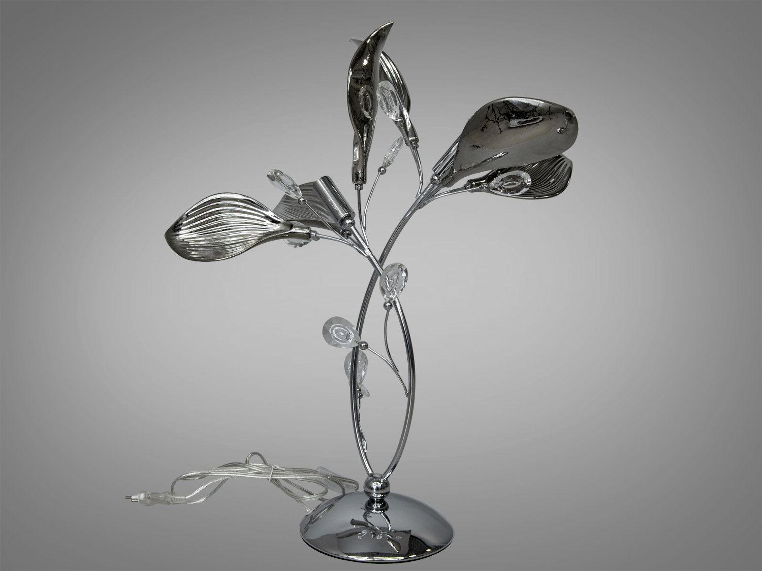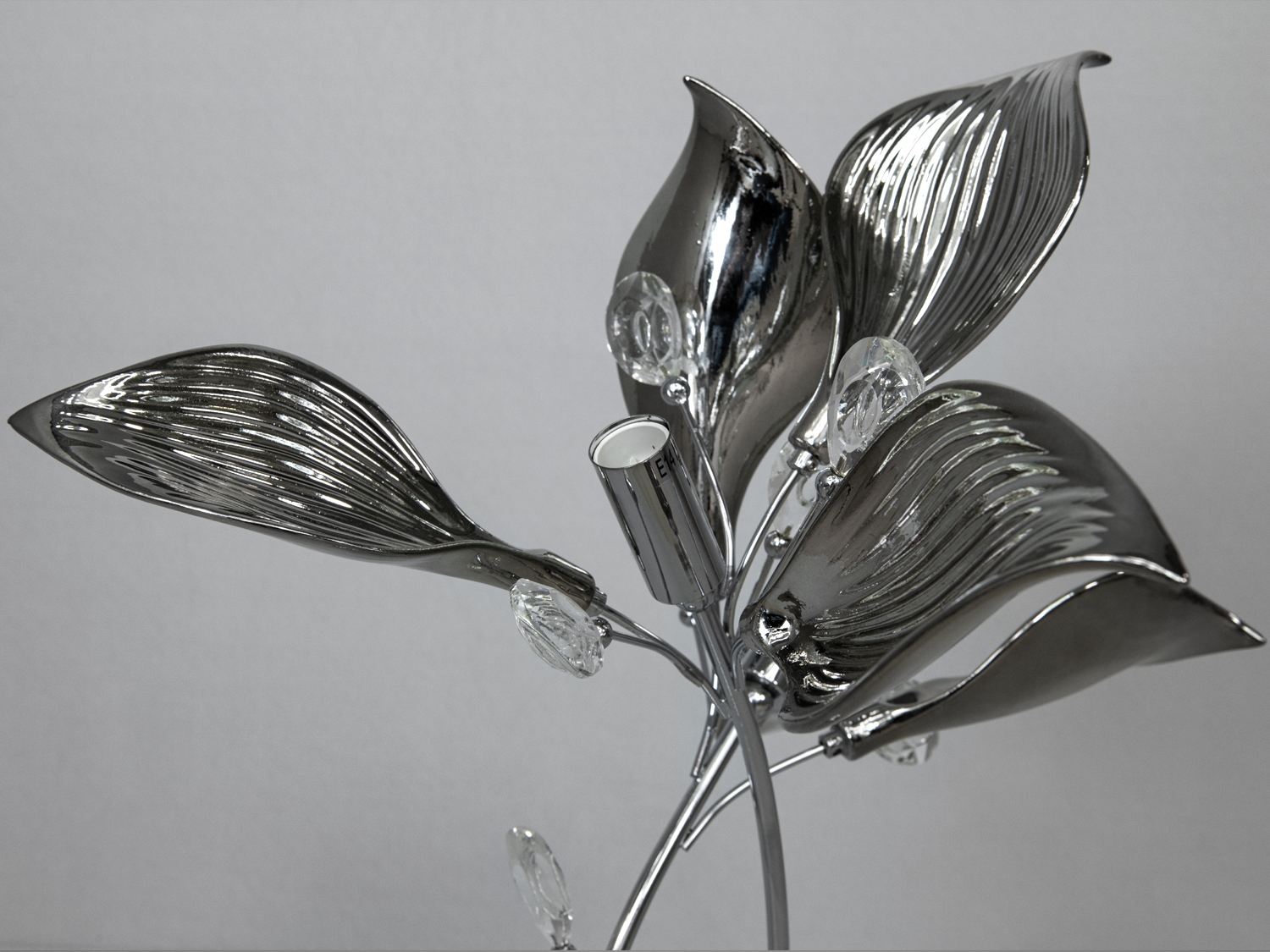 Настільна лампа з керамічними елементами в спальню — це стильне поєднання хромованого металу та витонченої кераміки, яке додає вашому інтер'єру сучасності та елегантності. Висота лампи становить 60 см, а діаметр — 55 см, що робить її гарним вибором для прикроватної тумби або робочого столу.