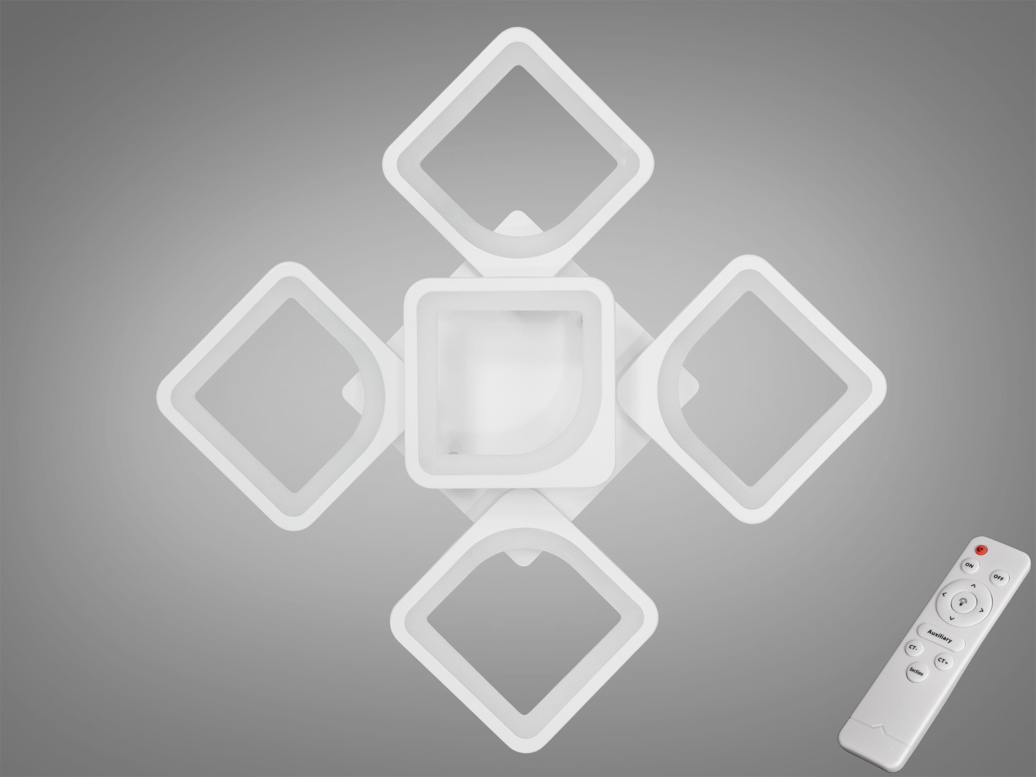 Квадратна LED люстра в дитячу з димером, біла, 72W на 10м2 S8060-4+1WHDIM-LS