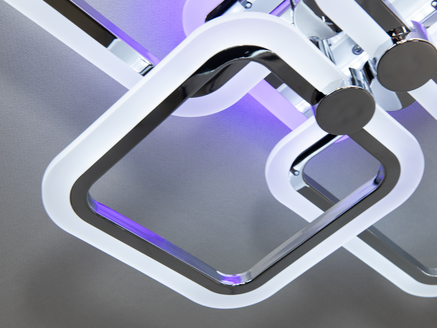 Ця плоска світлодіодна люстра у сучасному стилі поєднує в собі високу функціональність та естетичну красу. Модель виконана у стильному хромі з чотирма квадратними рамками, що створюють унікальну геометричну симетрію.