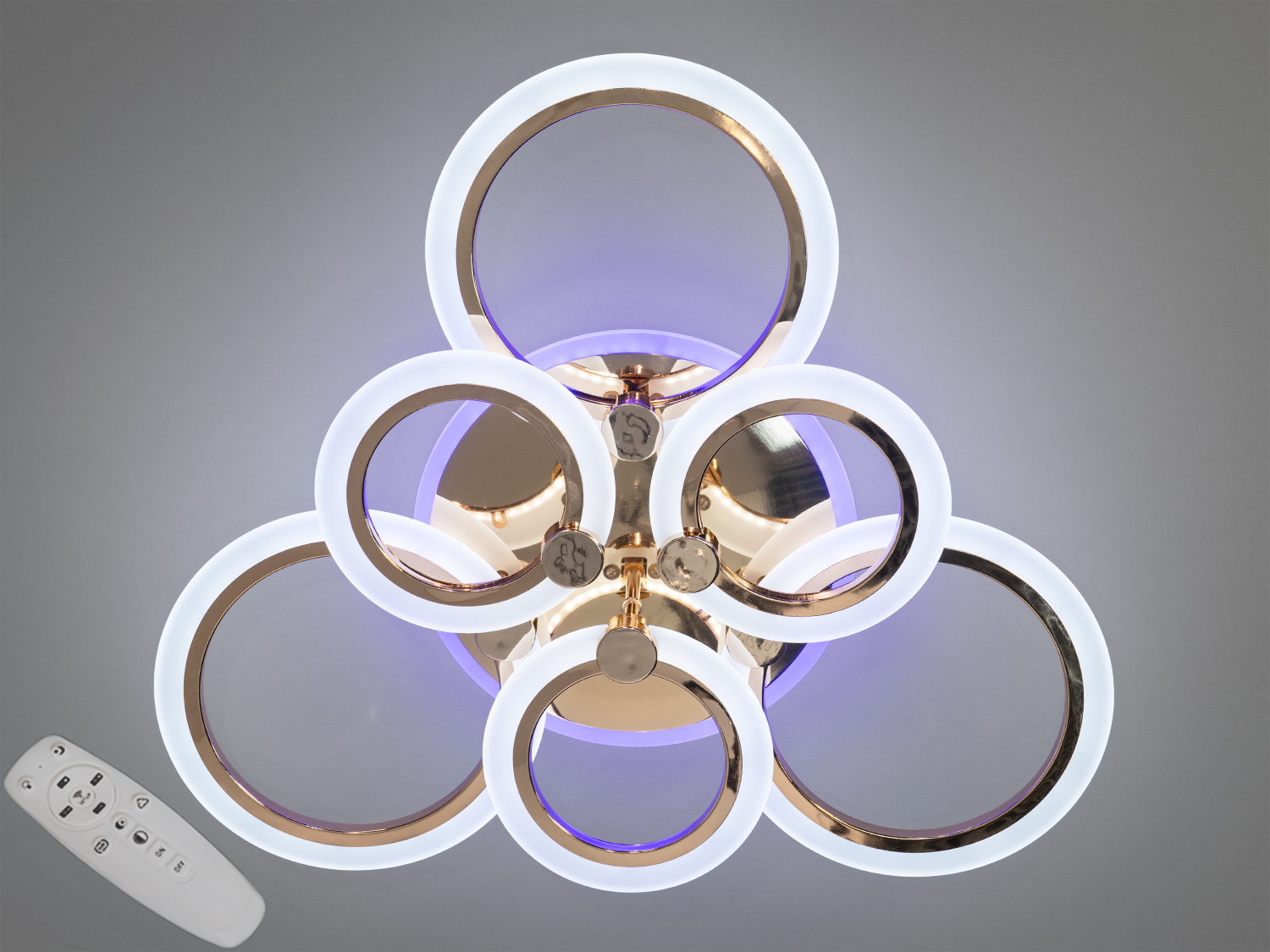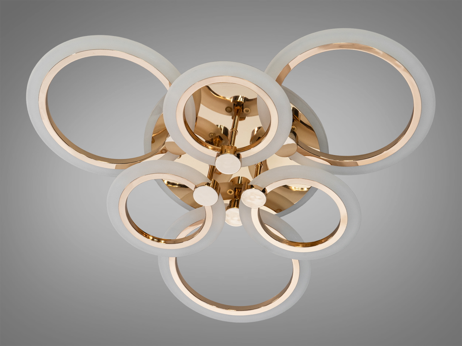 Світлодіодна стельова люстра 8022 золото 110W — це сучасний елемент інтер'єру, що поєднує в собі стиль і функціональність. Вона привертає увагу своїми геометрично кільцями, які створюють унікальний візуальний ефект. Хромована основа люстри гармонійно поєднується з акриловими розсіювачами, забезпечуючи м'яке і рівномірне освітлення в кімнаті.