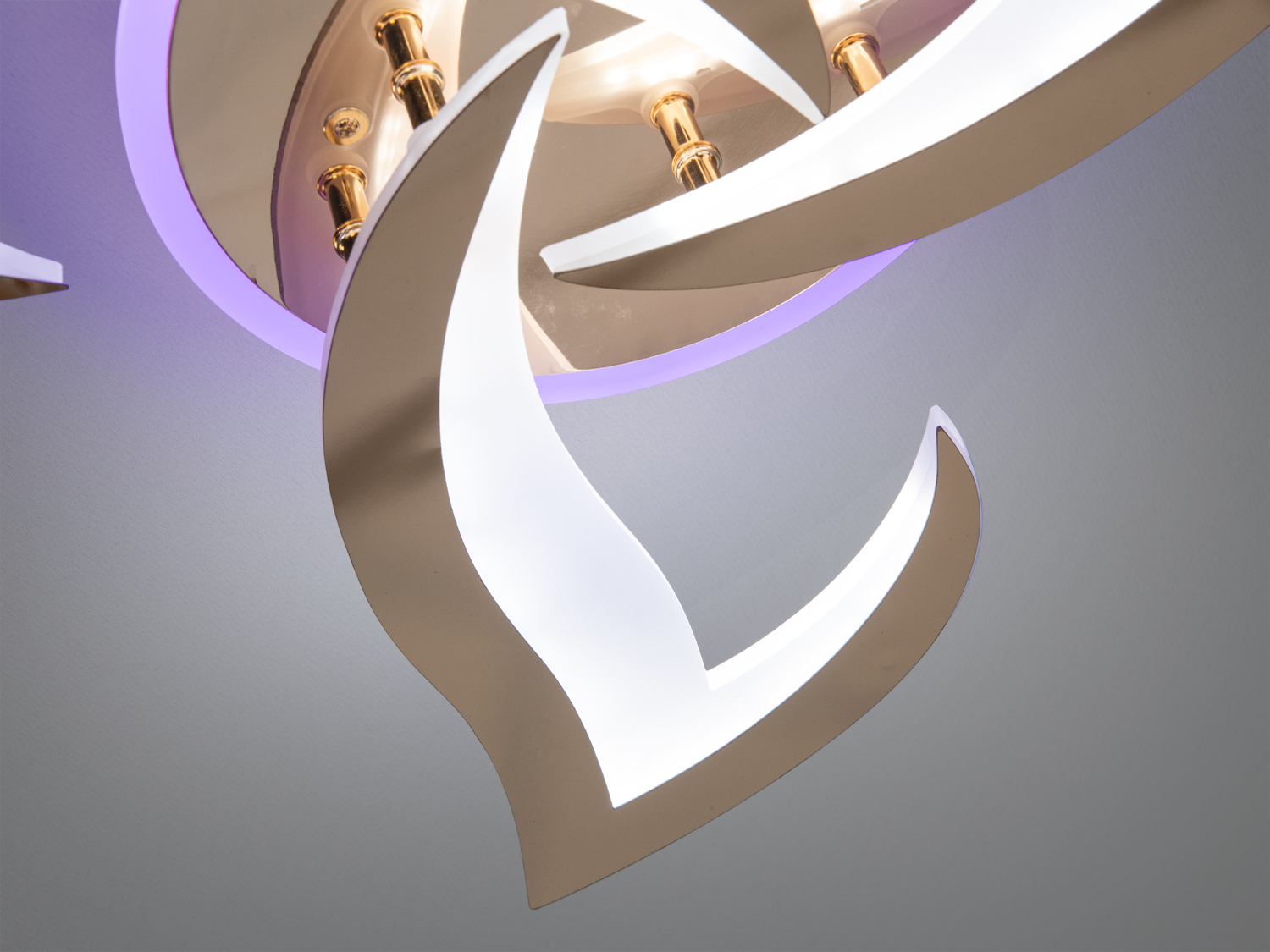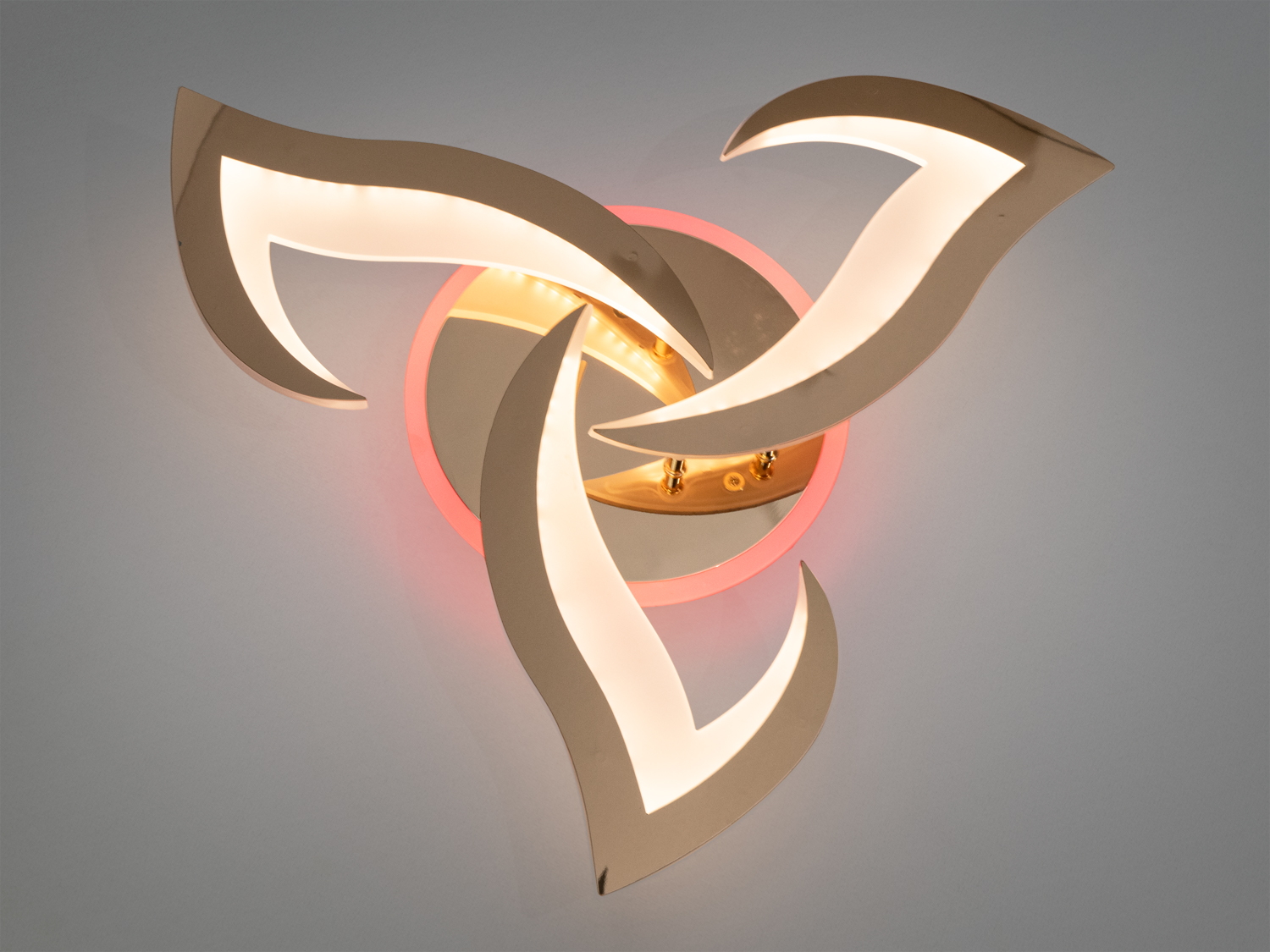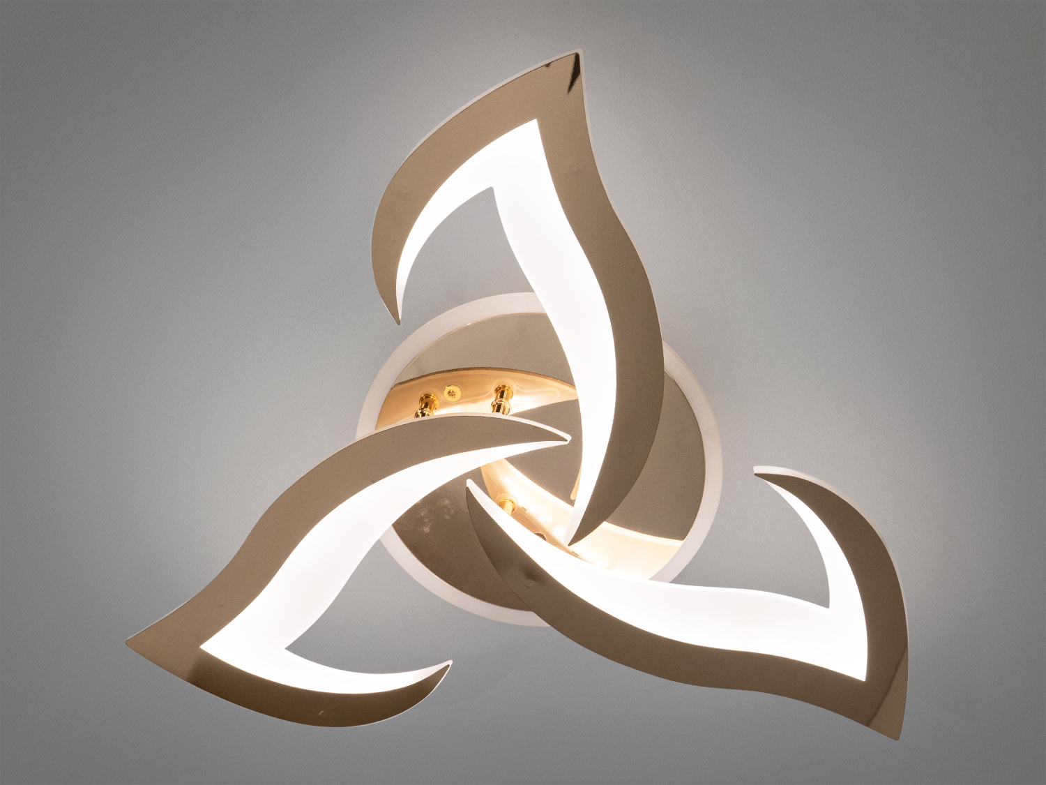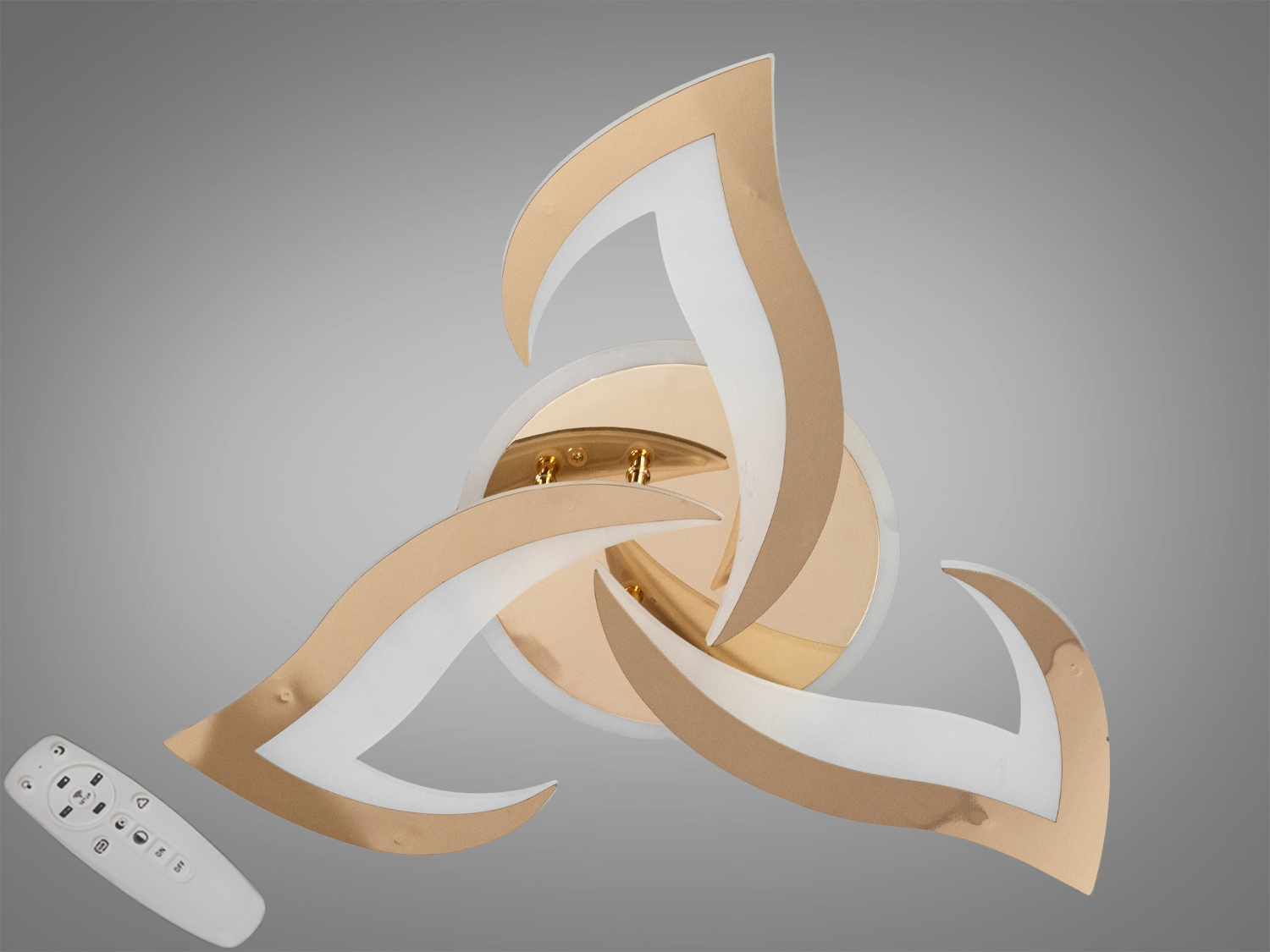 Стельова світлодіодна люстра 8146 — це гармонійне поєднання сучасного дизайну і технологій. Завдяки унікальній формі у вигляді квітки та золотому покриттю, вона додає шарму будь-якому інтер'єру.