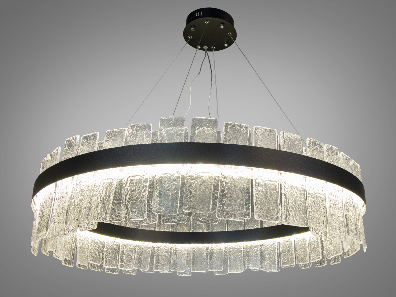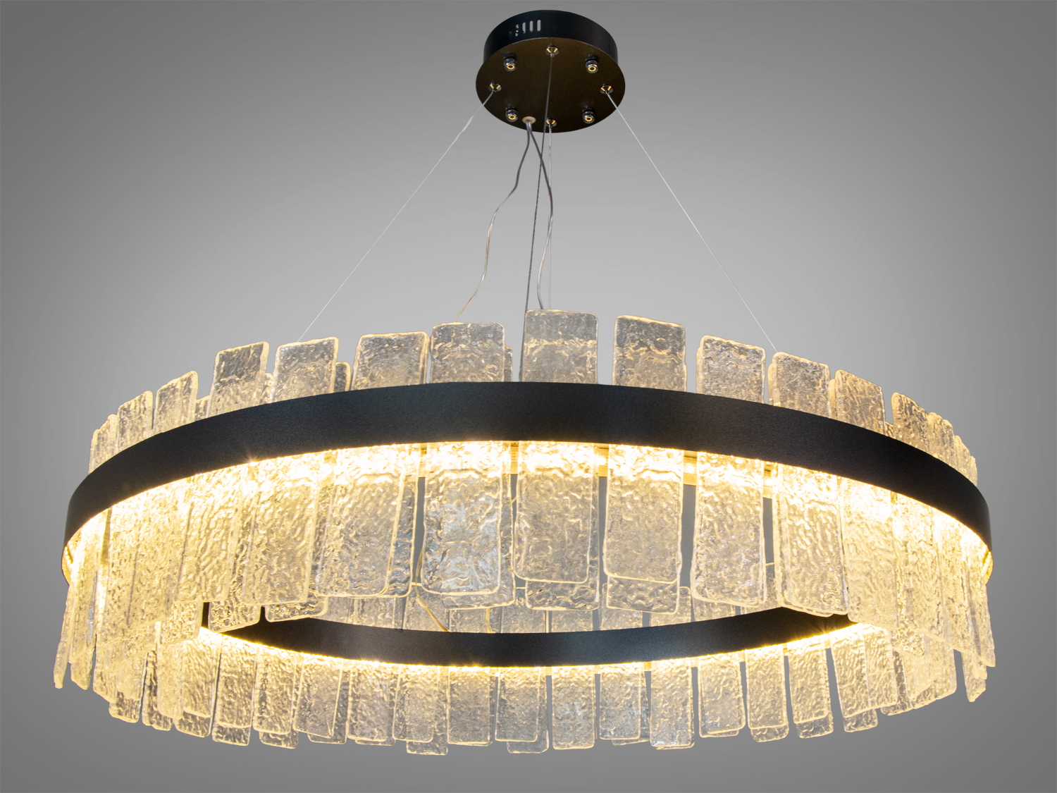 Створіть атмосферу розкоші у вашому інтер'єрі з підвісною люстрою 817-800PB-LS. Це сучасне освітлювальне рішення підходить для тих, хто цінує стиль і функціональність. Чорний металевий каркас підкреслює сучасний вигляд люстри, а текстуроване скло додає витонченості.