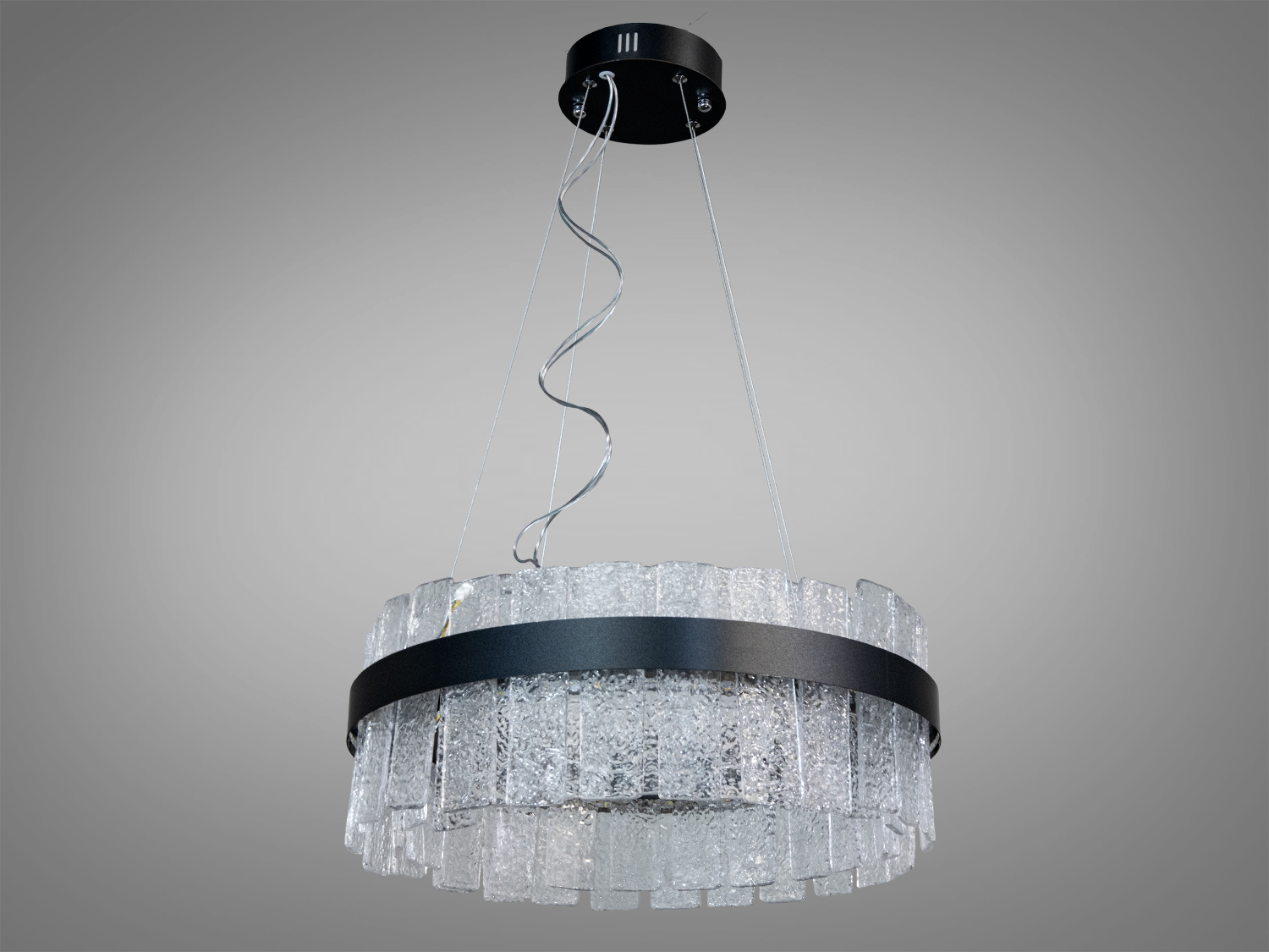 Підвісна люстра Diasha 817-500PB-LS стане справжньою прикрасою вашої оселі. Її сучасний дизайн з поєднанням чорного металевого обода та прозорих кришталевих елементів додасть вишуканості будь-якому інтер’єру.