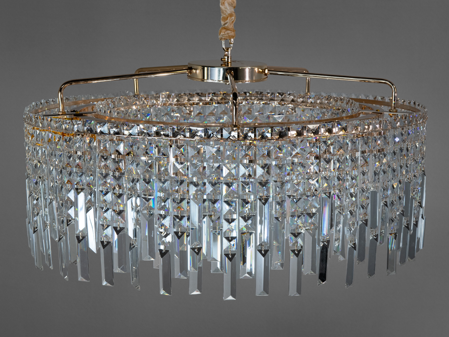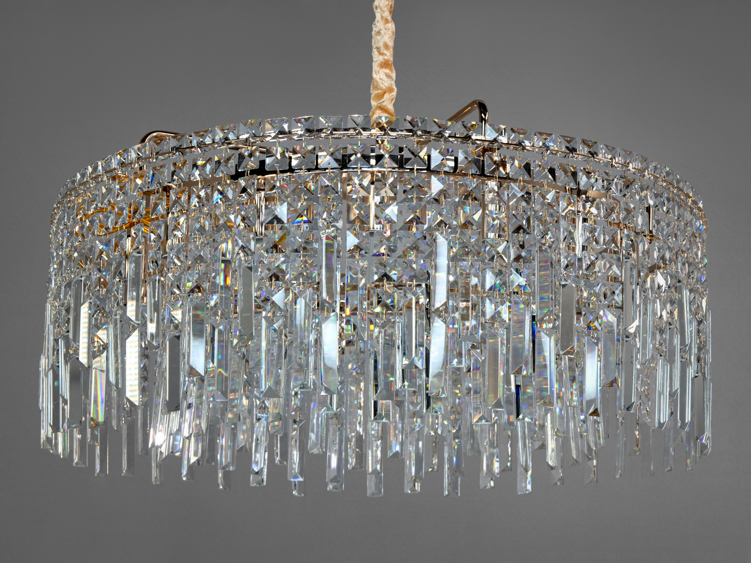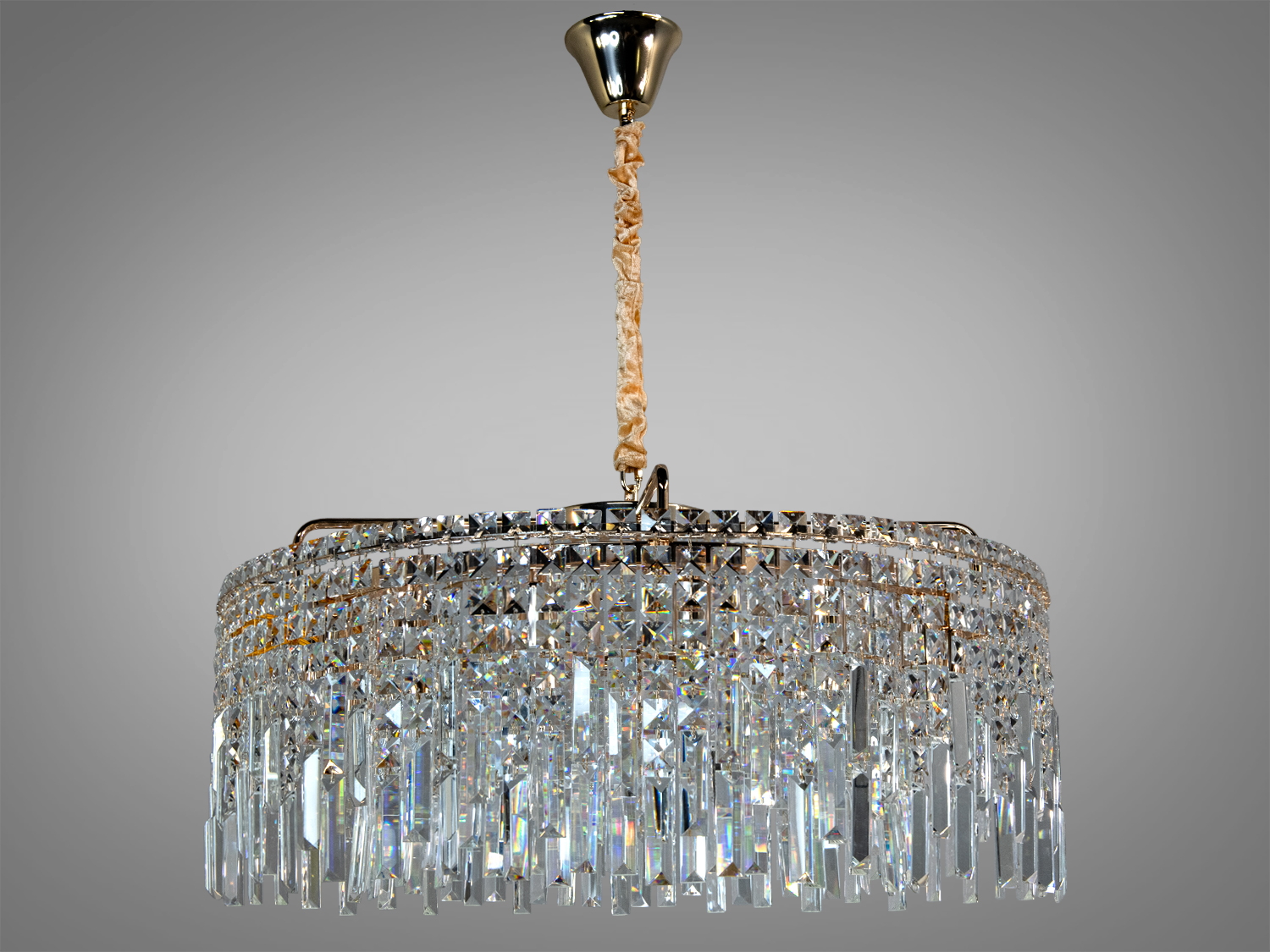 Підвісна кришталева люстра — елегантний акцент для вашого інтер'єру. Ця модель поєднує в собі витонченість і розкіш, будучи ідеальним вибором для вітальні чи спальні. Кришталеві підвіски створюють чарівний танець світла, додаючи вишуканості будь-якому простору.