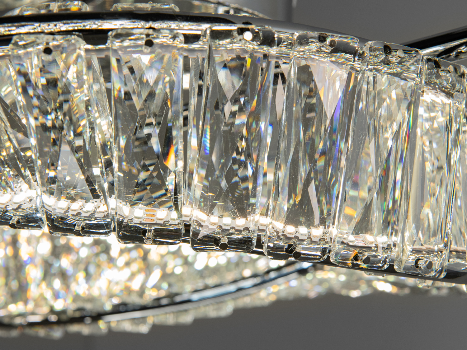 Інноваційна кришталева світлодіодна люстра — це захоплююче поєднання сучасного дизайну і передових технологій. Потужністю 110 Вт, вона забезпечує насичене і рівномірне освітлення для різноманітних приміщень.