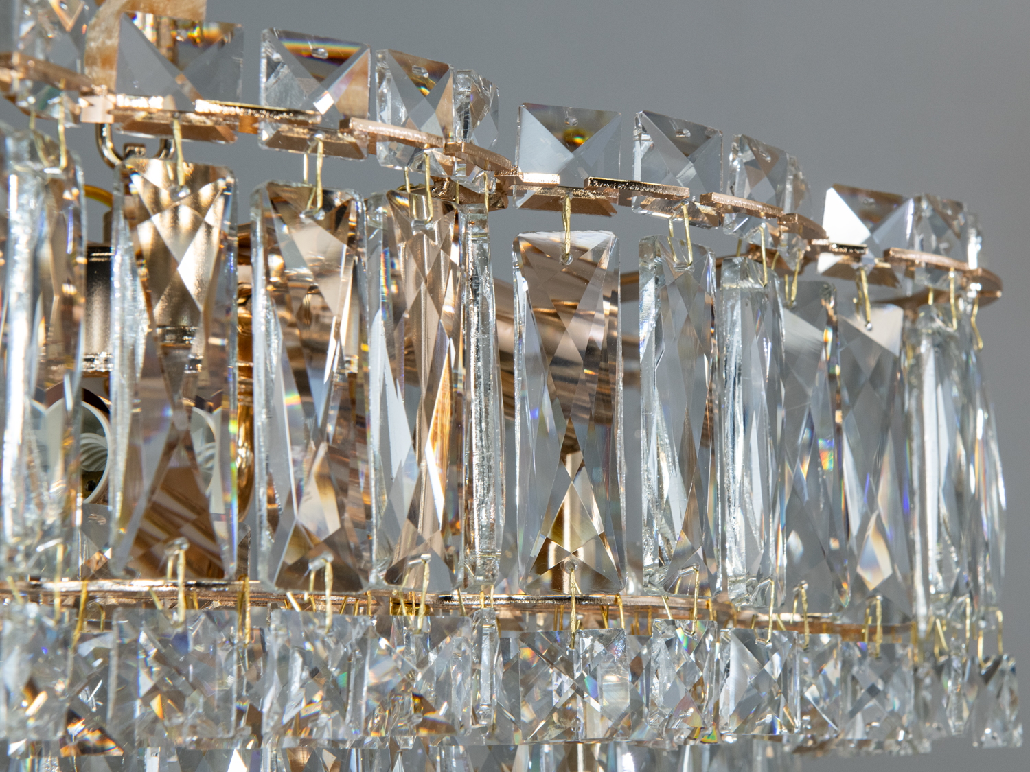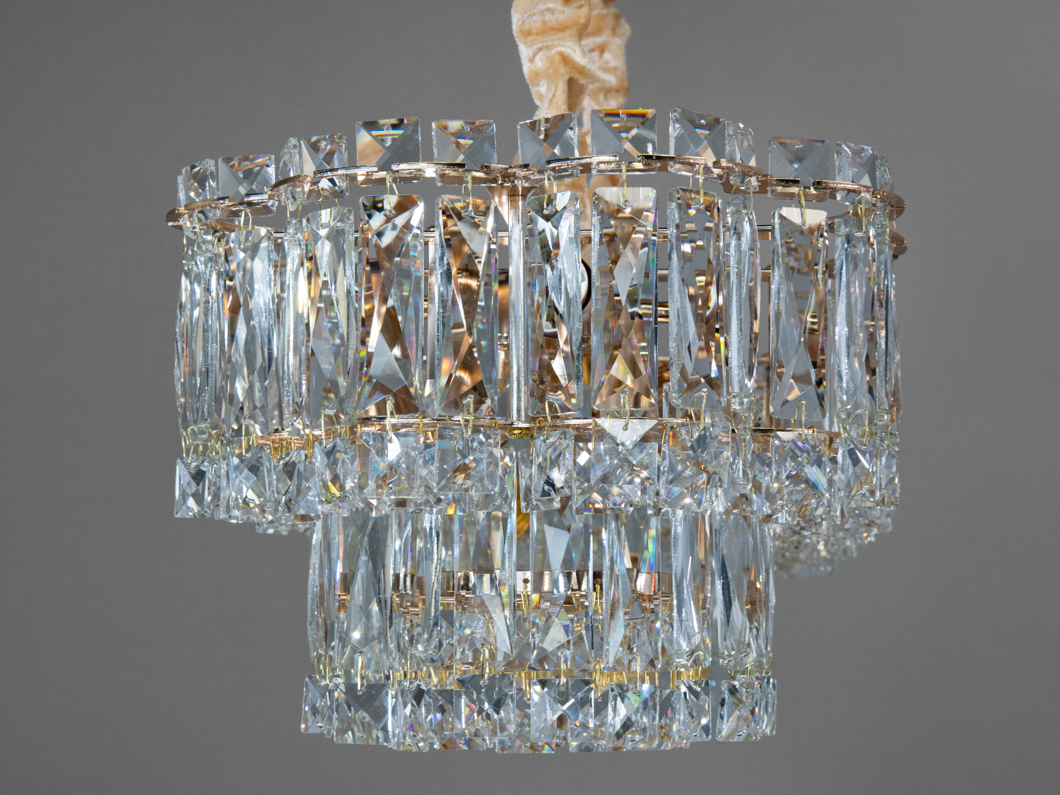 Кришталева люстра Diasha — це приклад вишуканості та стилю, яка стане центральним елементом декору у вашій вітальні. Золота основа та багатошарові кришталеві підвіски створюють неперевершену гру світла та тіні.