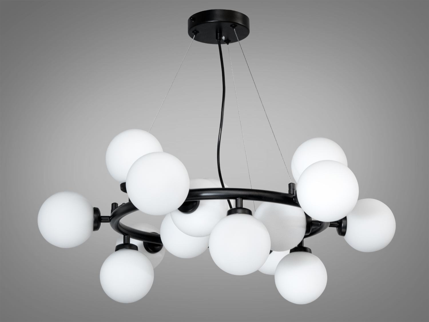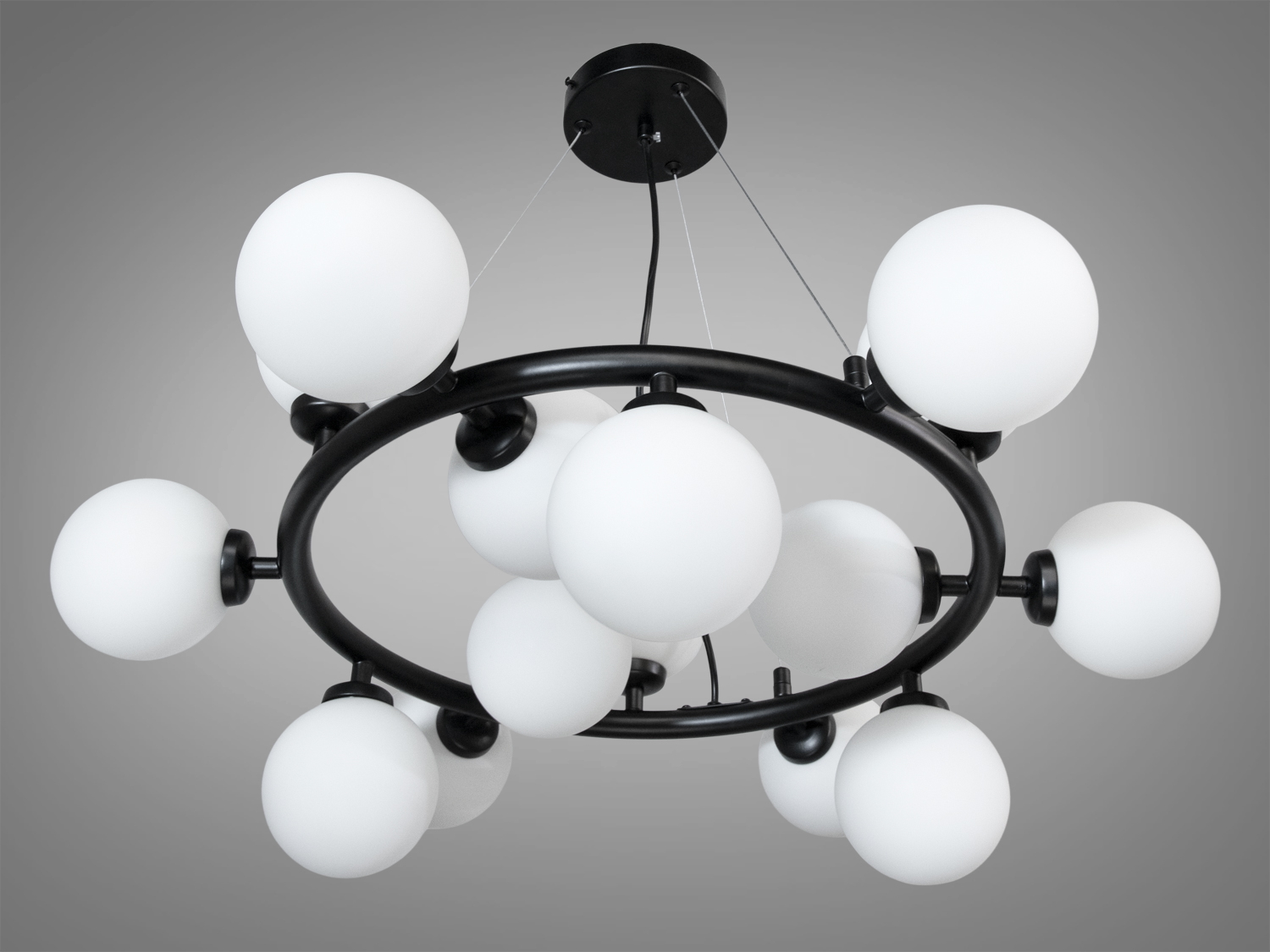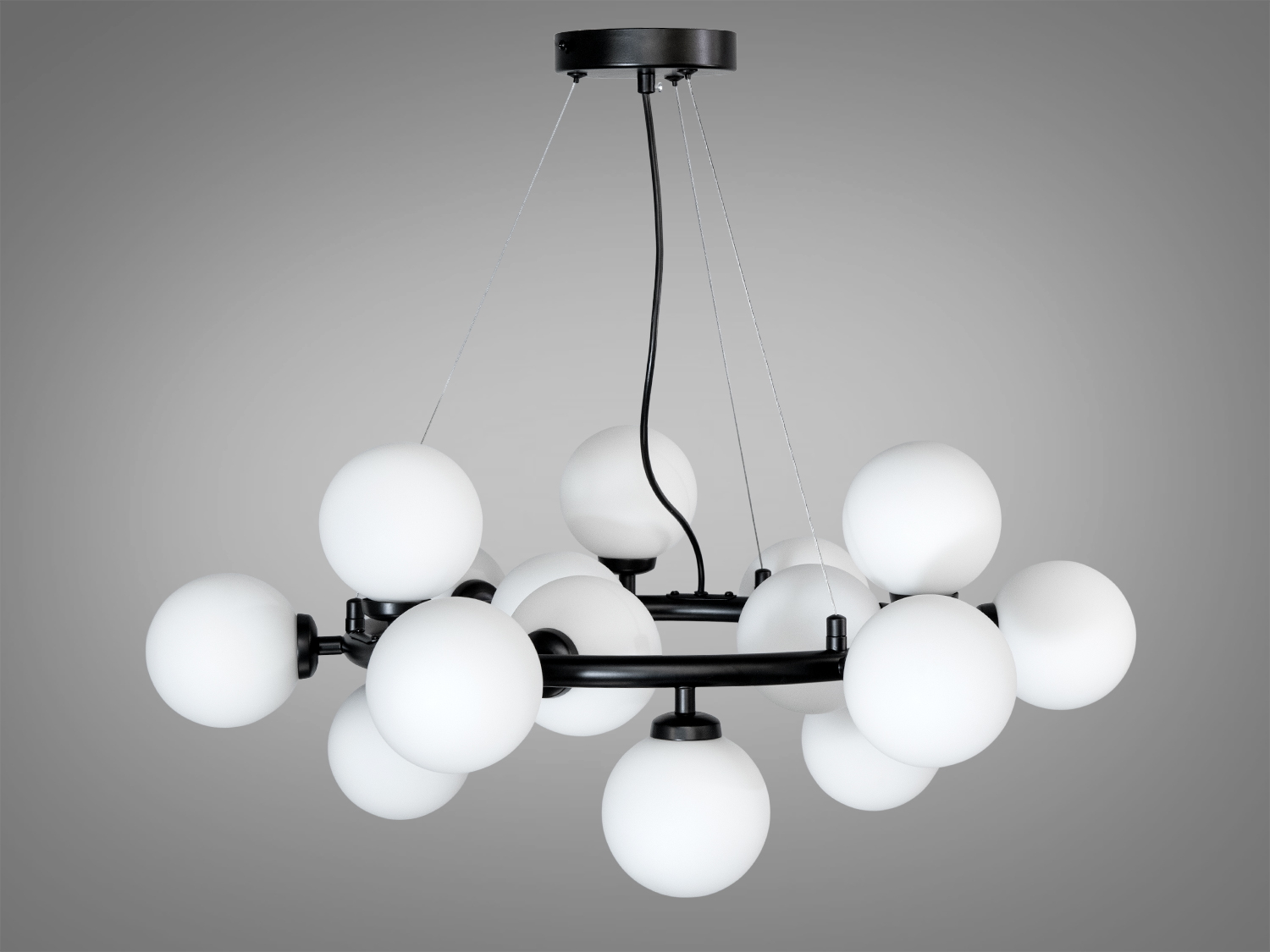 Світильник оснащений 15 лампами з патронами G9, що забезпечують м'яке та рівномірне освітлення. Металевий каркас гарантує довговічність і стійкість конструкції. Білі матові плафони зі скла створюють тепле й затишне освітлення, підходячи для будь-якого приміщення.