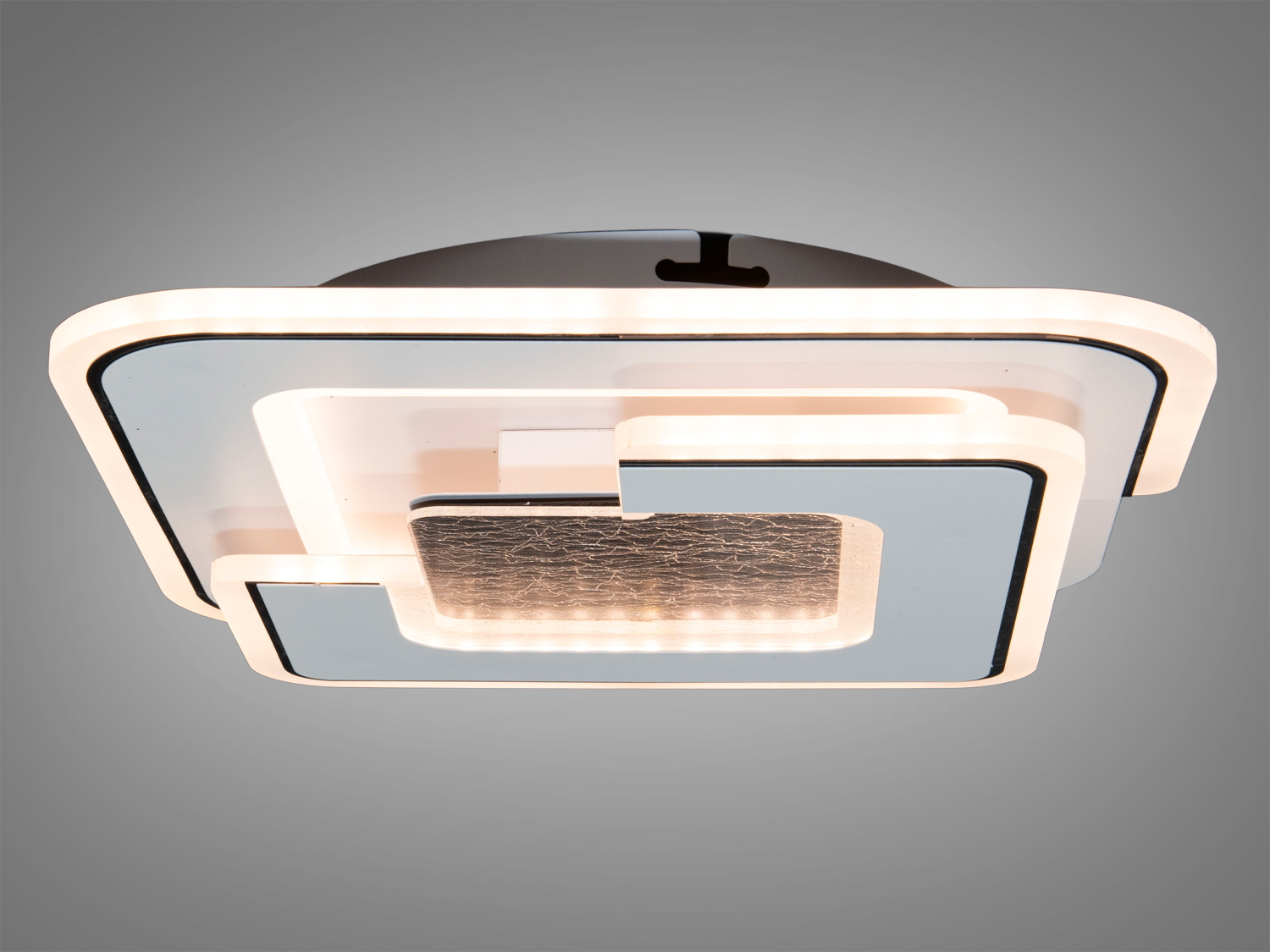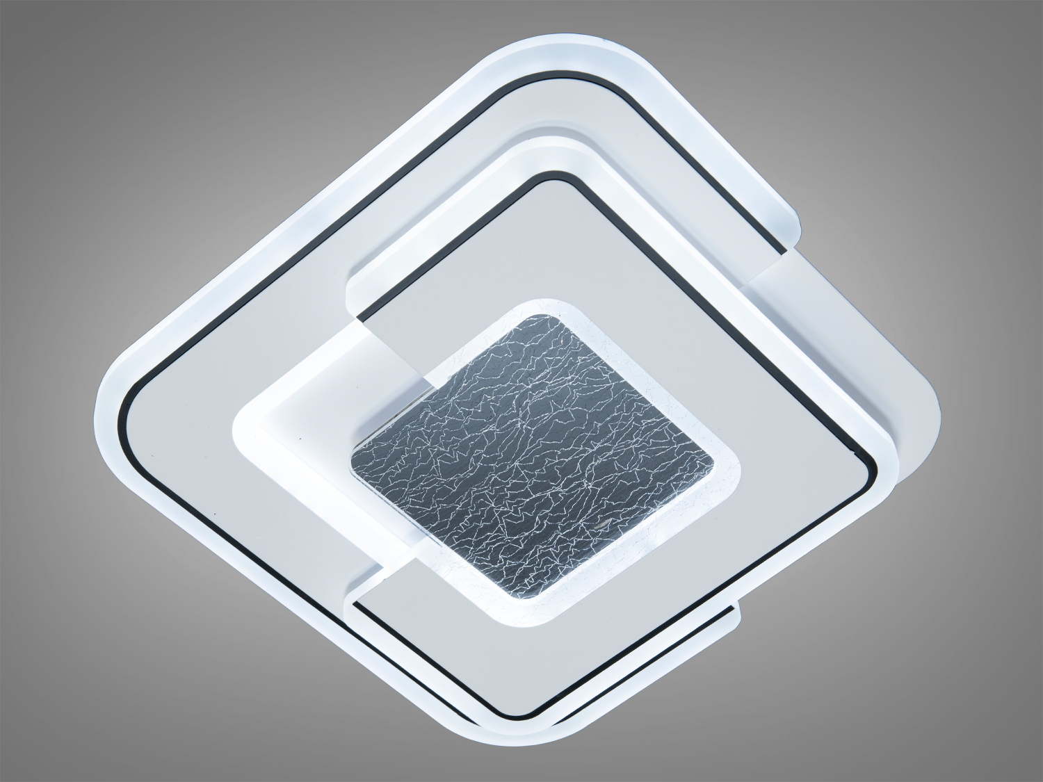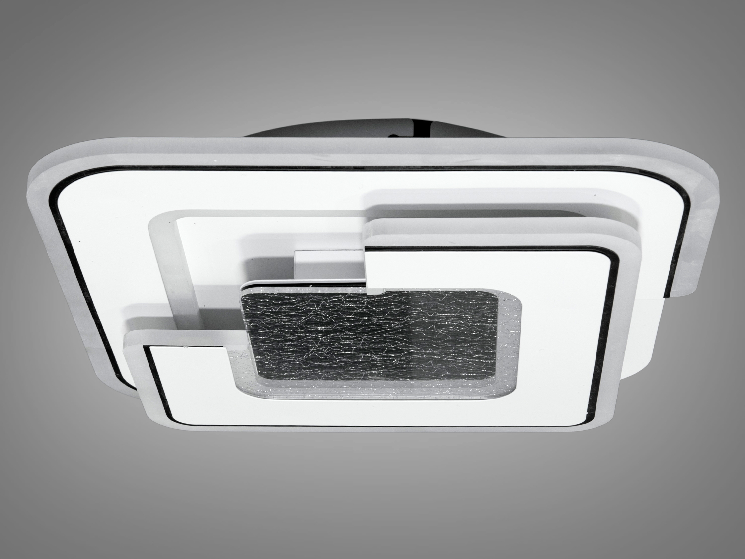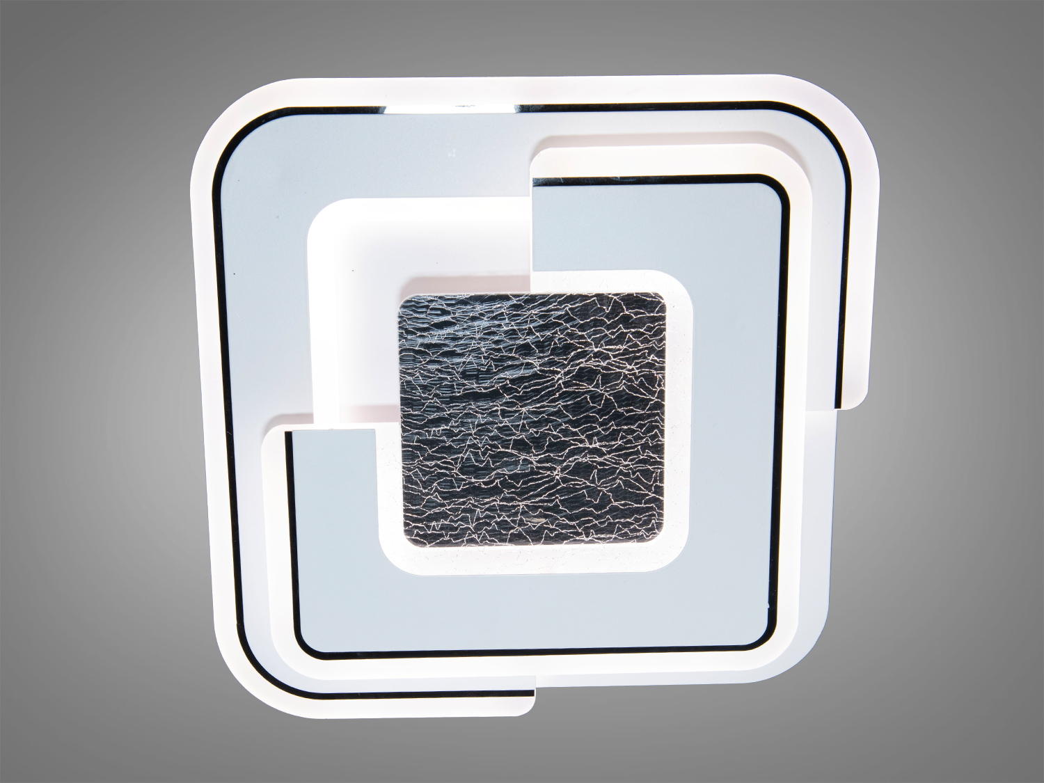 Світильник виконаний у квадратній формі з матового пластику, з чорними лініями та текстурованим центром. Це рішення для сучасних інтер'єрів, яке підкреслить мінімалістичний стиль вашого простору.