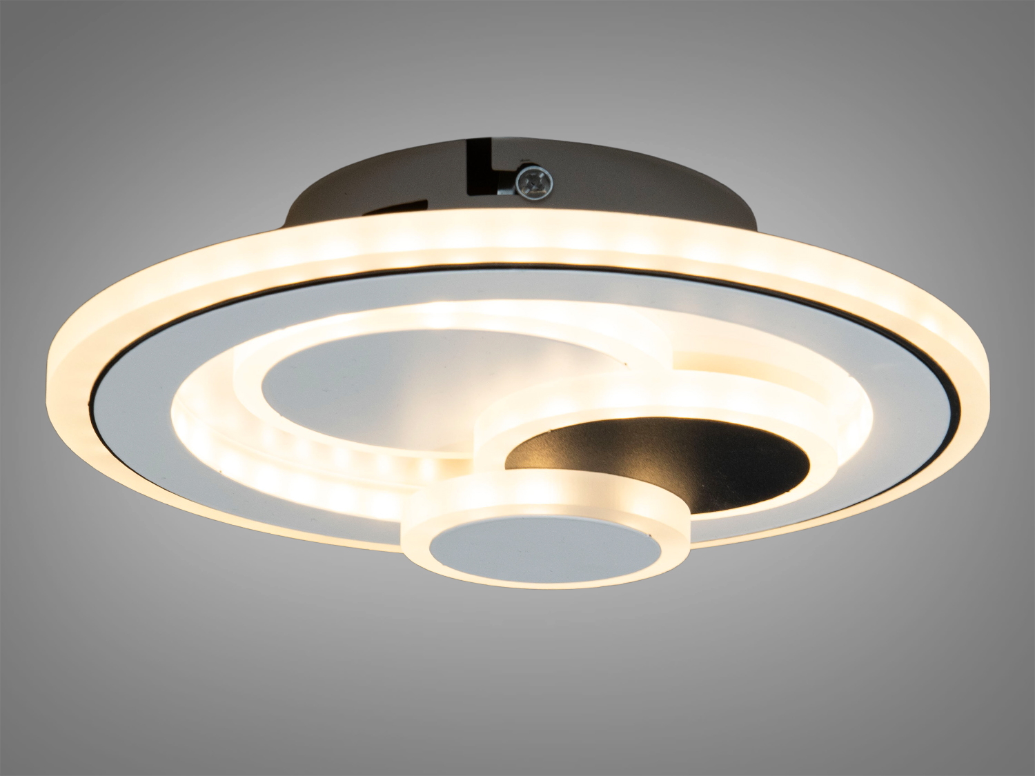 Елегантний дизайн з концентричними колами та контрастними кольорами додає сучасний акцент у будь-яке приміщення. Універсальні кольорові температури — 3200 K, 4100 K та 6000 K — дозволяють обрати оптимальне освітлення для різних потреб.