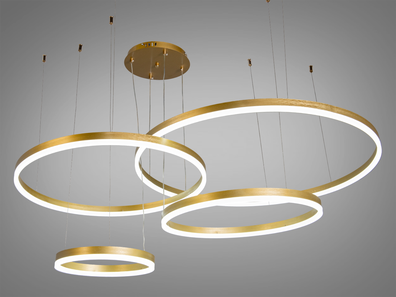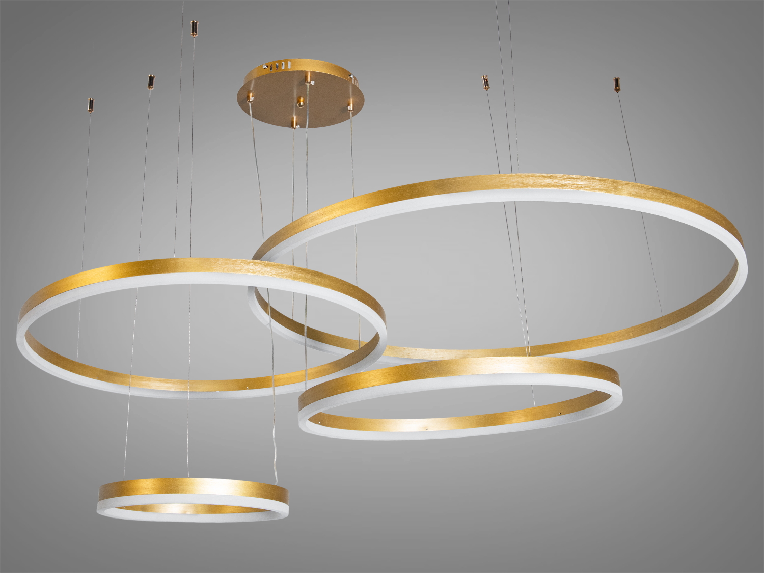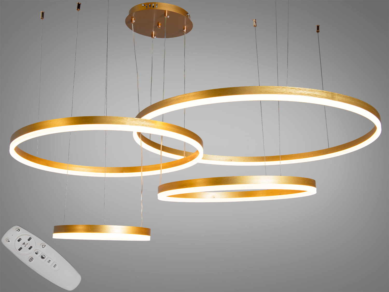 Ця світлодіодна люстра у золотистому відтінку стане елегантним доповненням вашого інтер'єру. Люстра представлена чотирма кільцями, які створюють захоплюючий візуальний ефект.