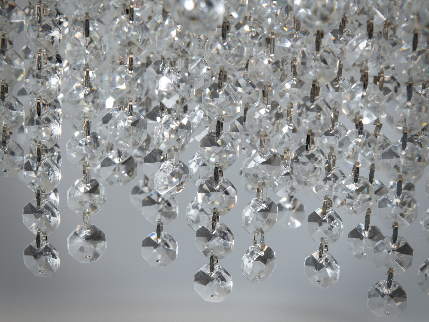 Люстра виготовлена з високоякісного металу та прикрашена кришталевими підвісками, які створюють чудове переливчасте світло. Це не лише джерело освітлення, а й стильний елемент декору, який підкреслить ваш індивідуальний смак.