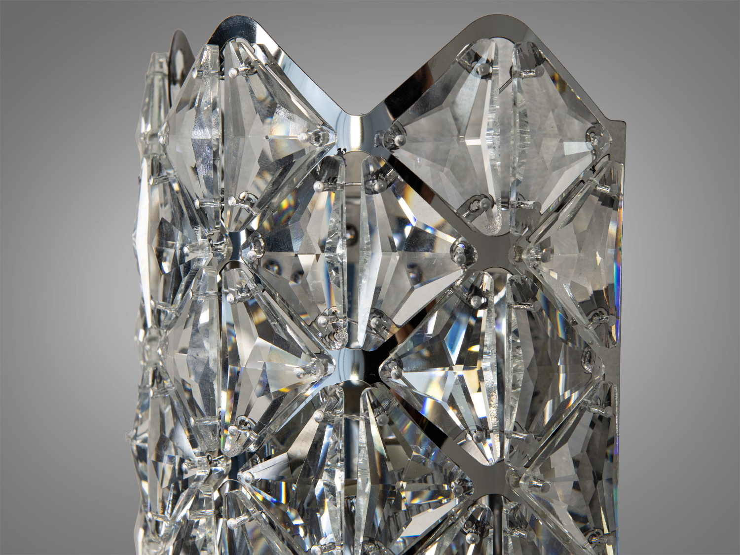 Каскадний дизайн кришталів створює вишуканий вигляд, додаючи відчуття руху та легкості. Хромована основа додає блиску та сучасності.