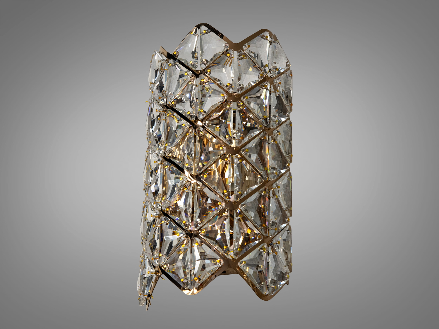 Цей світильник виготовлений з високоякісних матеріалів, де кожен кристалик відшліфований для максимального розсіювання світла. Золотий відтінок металевої основи підкреслює розкіш і додає теплоти в атмосферу приміщення.