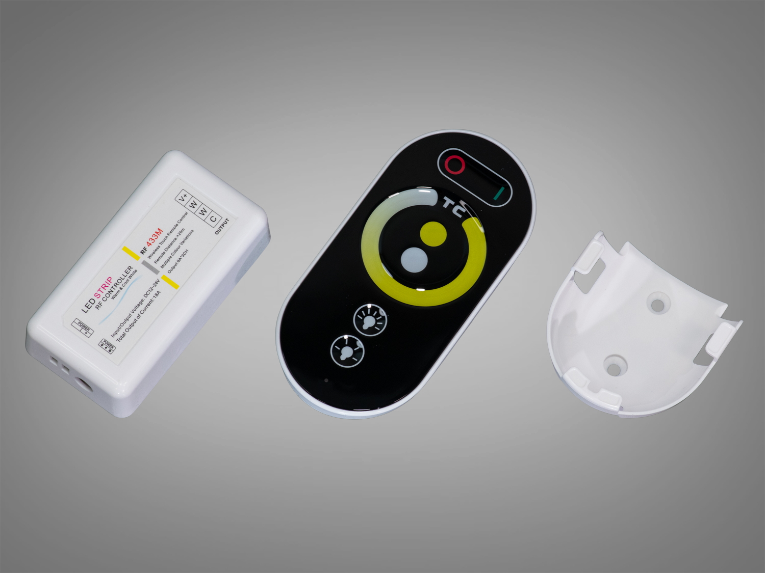 Контролер для LED стрічки з пультом PC-H12-DIM-CW-WW-RF433-18A — точне налаштування світла для затишного простору.