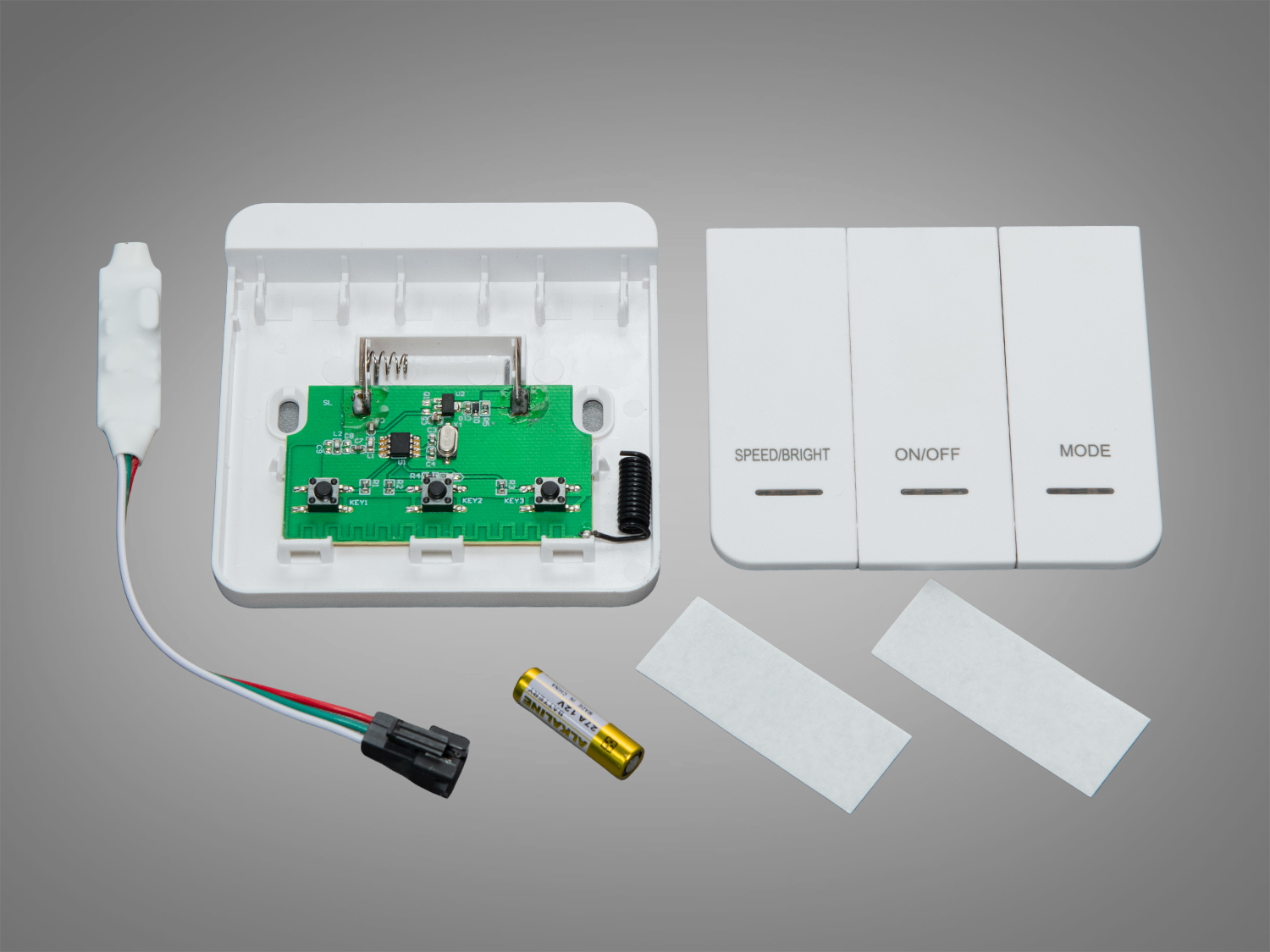 Цей RF контролер для SPI світлодіодної стрічки часто використовується для першочергового налаштування режимів або зміни ефектів світла. Три кнопки забезпечують повний контроль: ввімкнення/вимкнення, перемикання ефектів і регулювання яскравості або швидкості анімації. Ви легко знайдете свій ідеальний режимів освітлення — від спокійного вечора до динамічної вечірки.