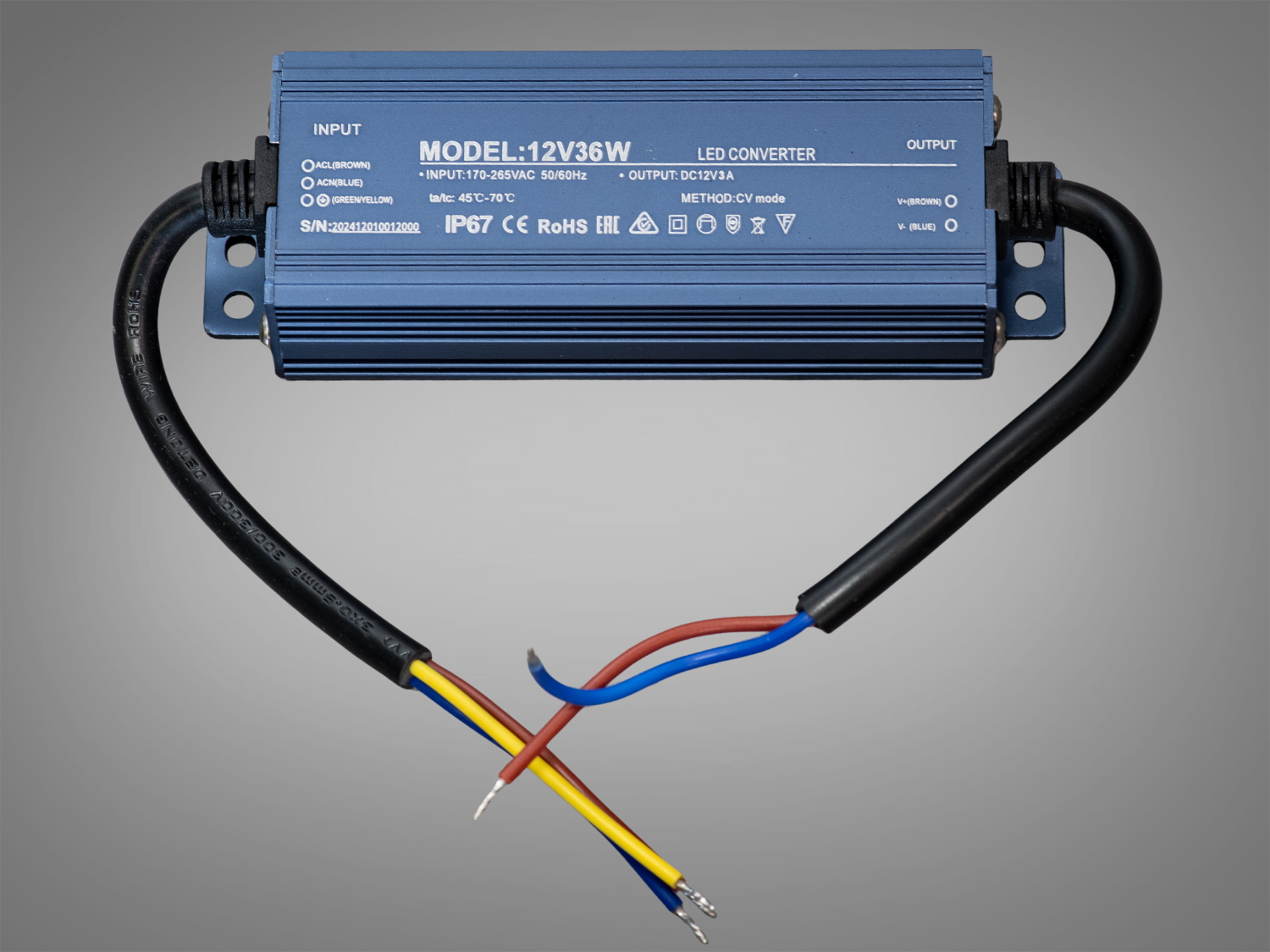 Герметичний блок живлення IP68 на 36W оптимізований для мінімізації втрат енергії, забезпечуючи ефективне та економне споживання електроенергії.