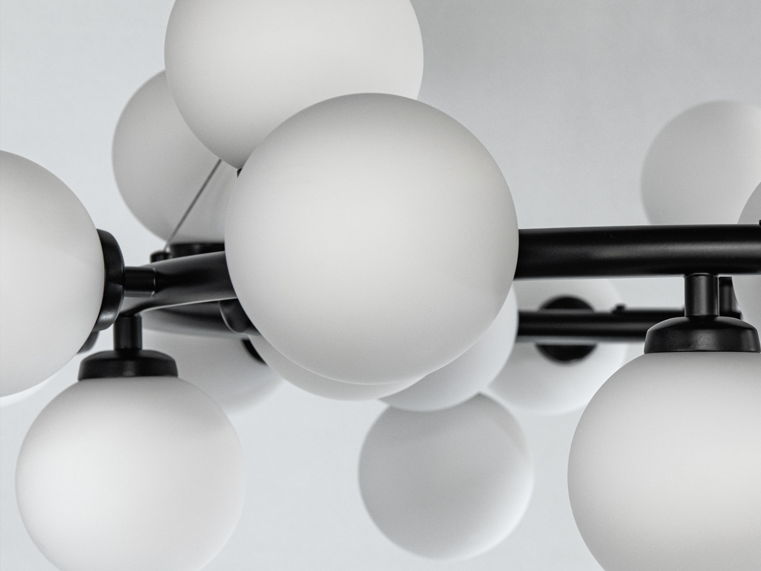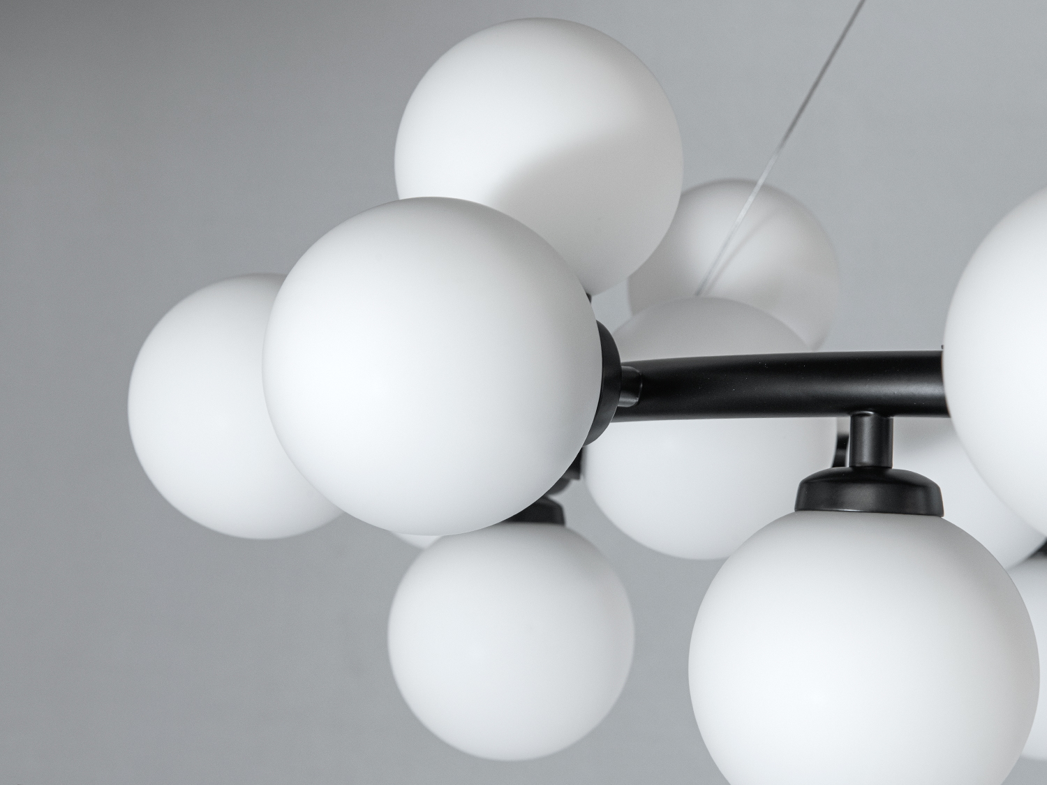 Підвісна люстра Loft з 25 лампами — це сучасне рішення для стильного та функціонального освітлення вашого простору. Її чорний каркас з металу та білі матові плафони зі скла створюють унікальне поєднання, яке гармонійно впишеться в будь-який сучасний інтер'єр.
