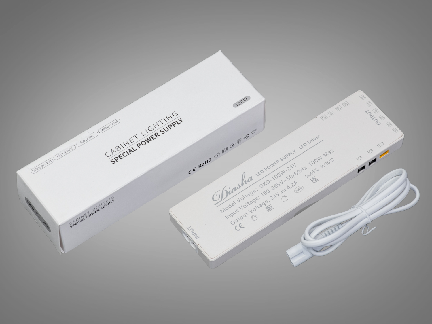Для підсвітки робочих поверхонь, кухонних зон, вітрин або скляних полиць ця модель слугує як управляємий драйвер для LED стрічки потужністю 100 Вт, створюючи якісне освітлення без мерехтіння.