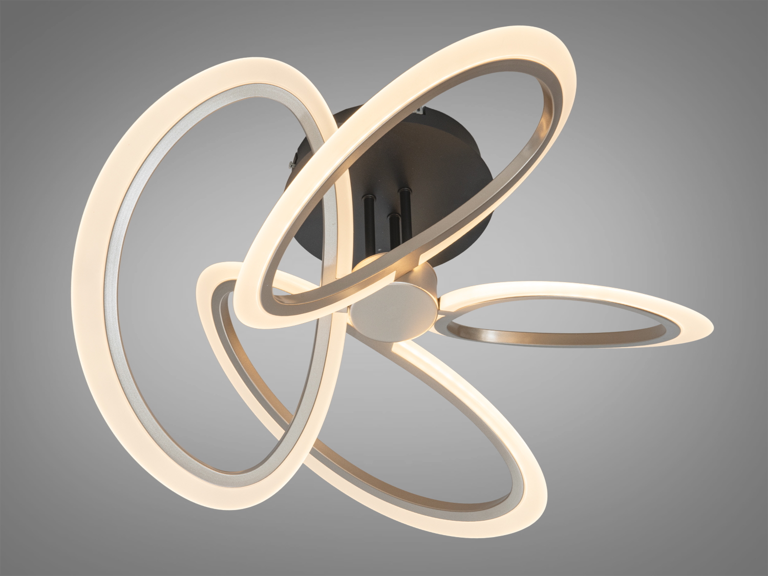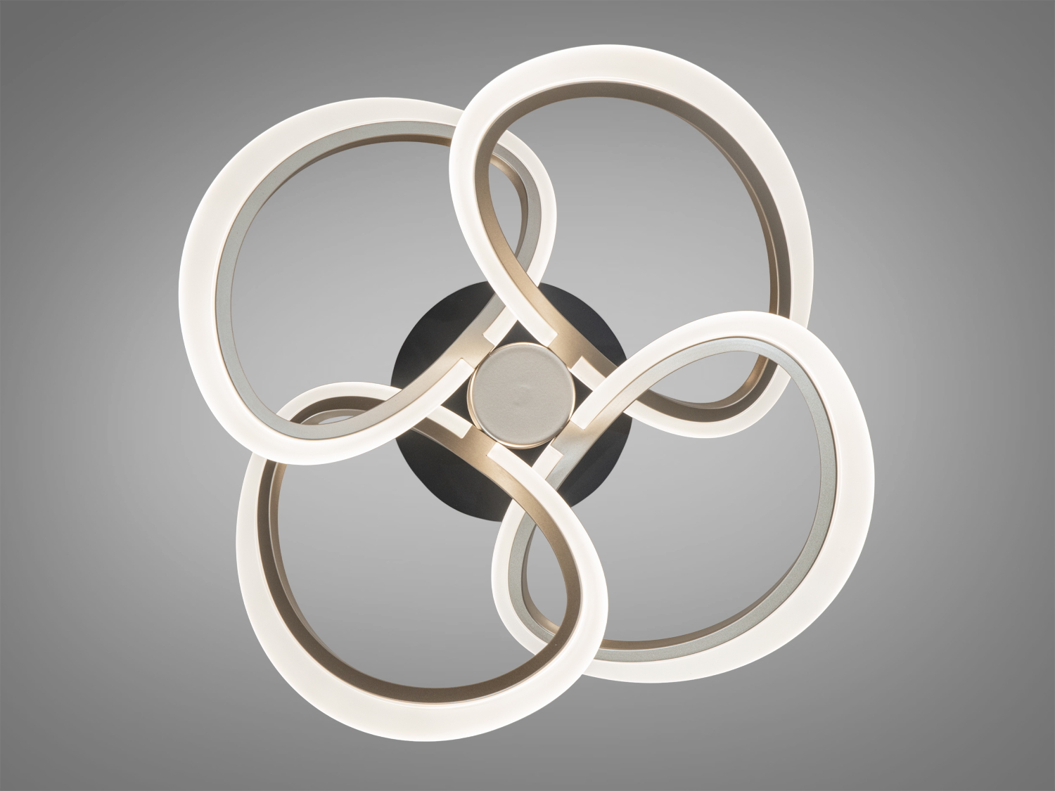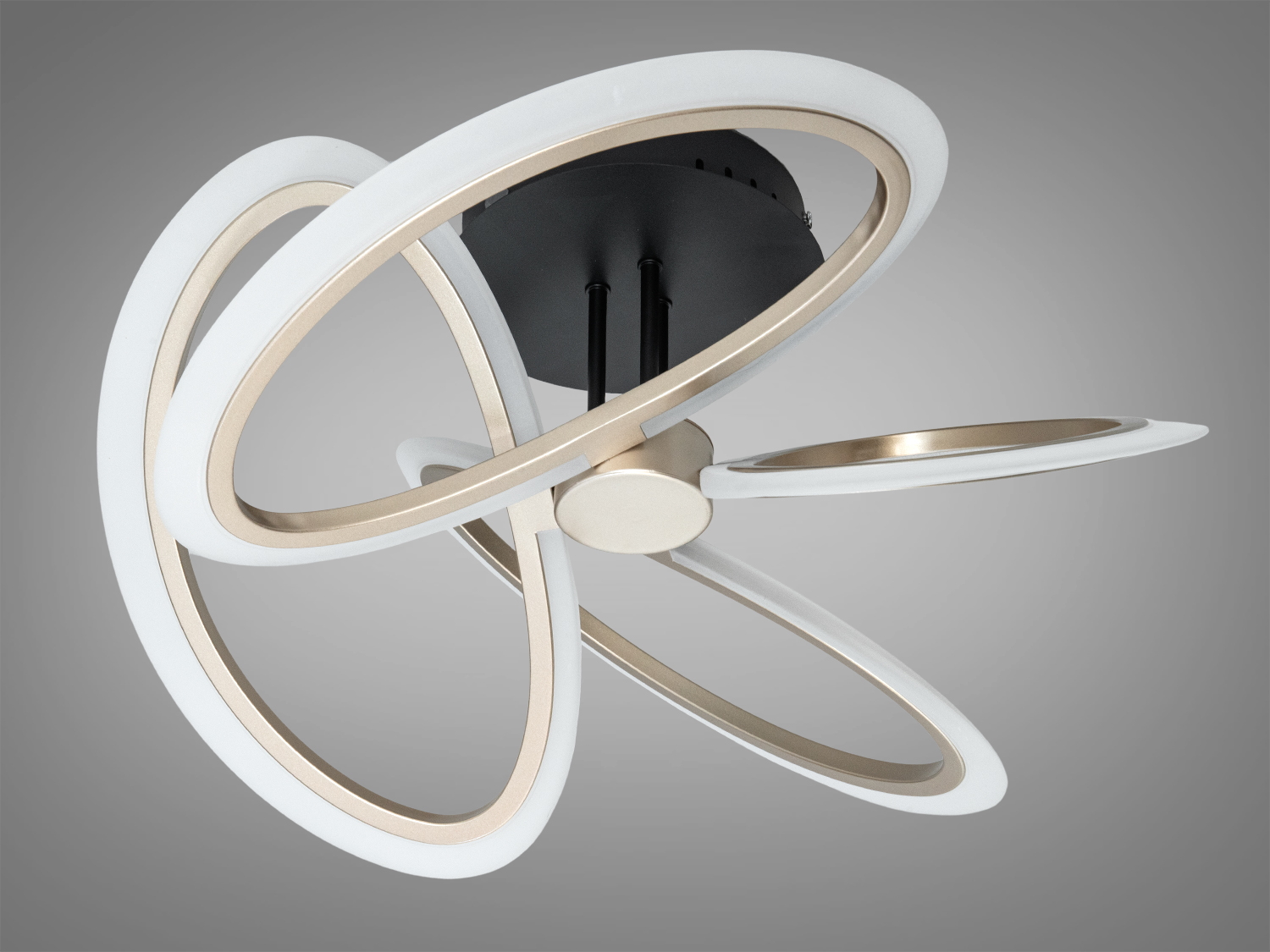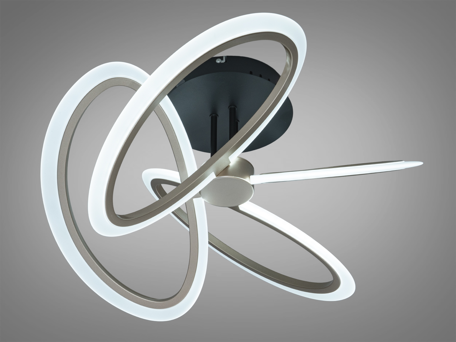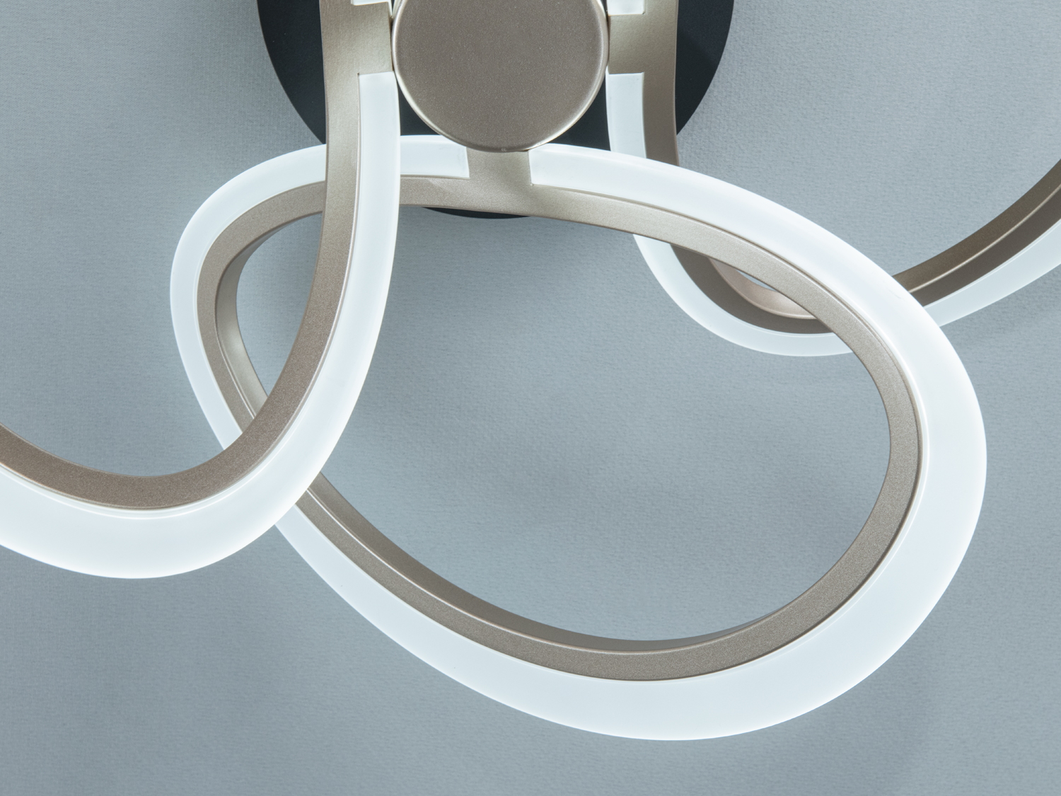 Дизайн з переплетеними кільцями створює легку візуальну композицію, придатну для інтер'єрів у стилі мінімалізм чи скандинавський. Колір шампань гармонійно поєднується з теплими тонами меблів і декору.