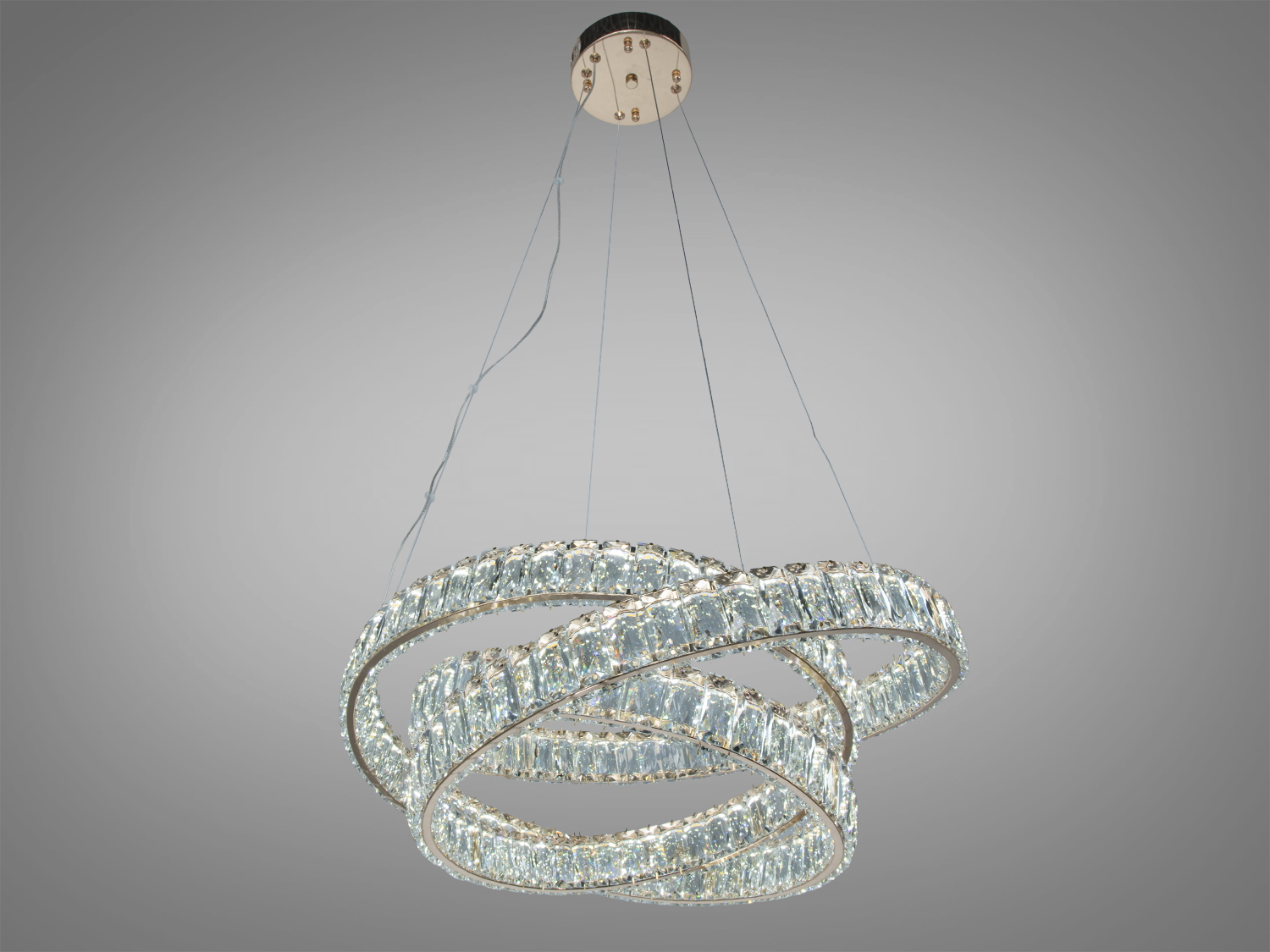 • Кришталеві кільця формують унікальний об'ємний силует у стилі стрічки Мебіуса, додаючи простору неординарності.