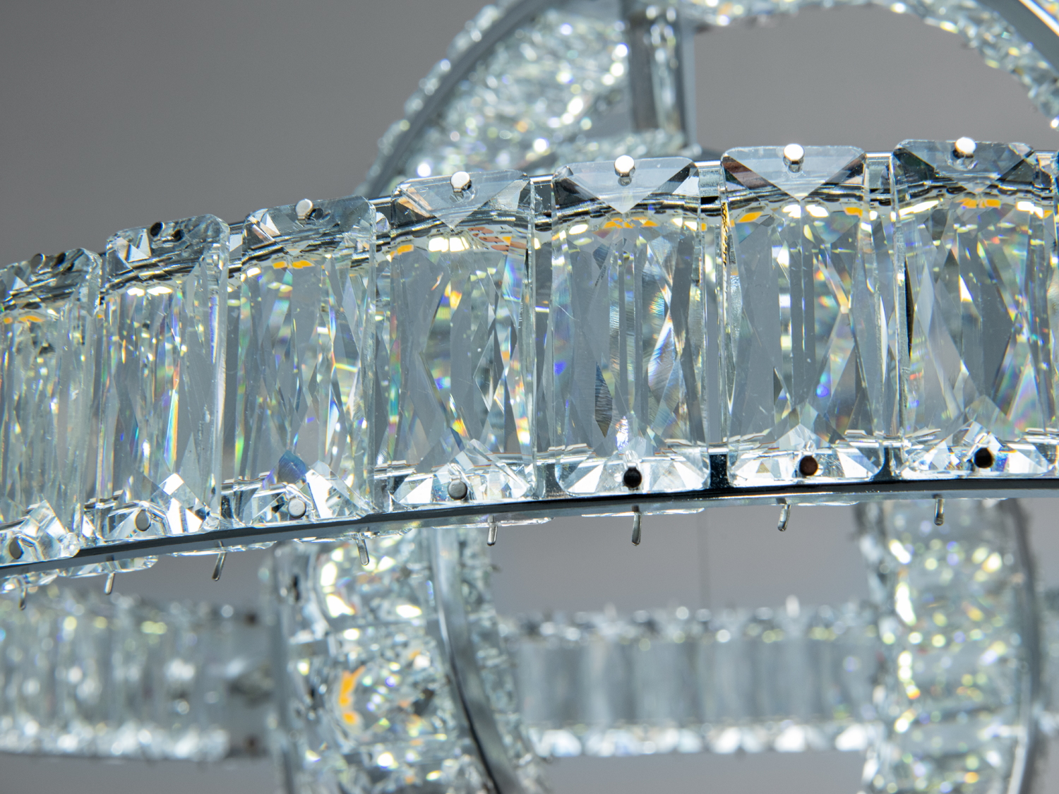 Світлодіодна кришталева люстра Diasha – це сучасний підвісний світильник, який поєднує в собі функціональність і витончений дизайн. Вона складається з трьох кілець, оздоблених прозорими кристалами, що створюють багаторівневу світлову композицію з привабливими відблисками. Хромоване покриття металевого корпусу підсилює яскравість світла та додає люстрі сучасного вигляду.
