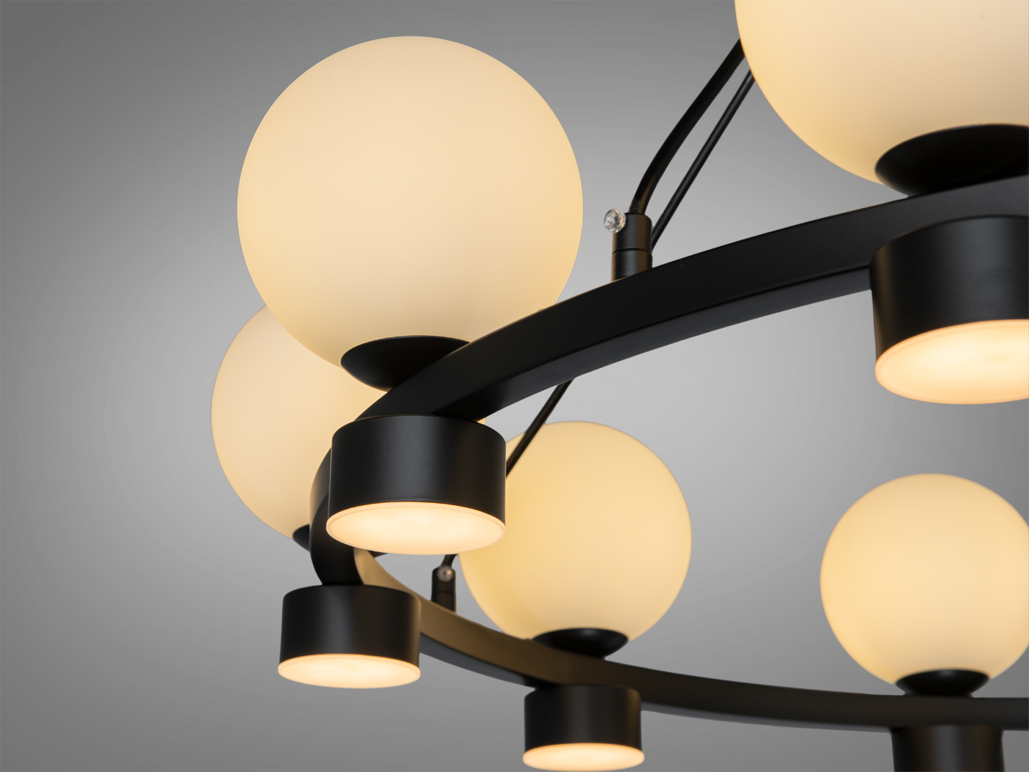Підвісна люстра LQ7121-20BK — це стильне рішення для вашого інтер'єру в стилі лофт і мінімалізм. Поєднуючи сучасний дизайн і високу функціональність, вона стане центром уваги в будь-якій кімнаті. Чорний металевий каркас і матові круглі плафони створюють вишуканий та елегантний вигляд, для вітальні, спальні або офісу.