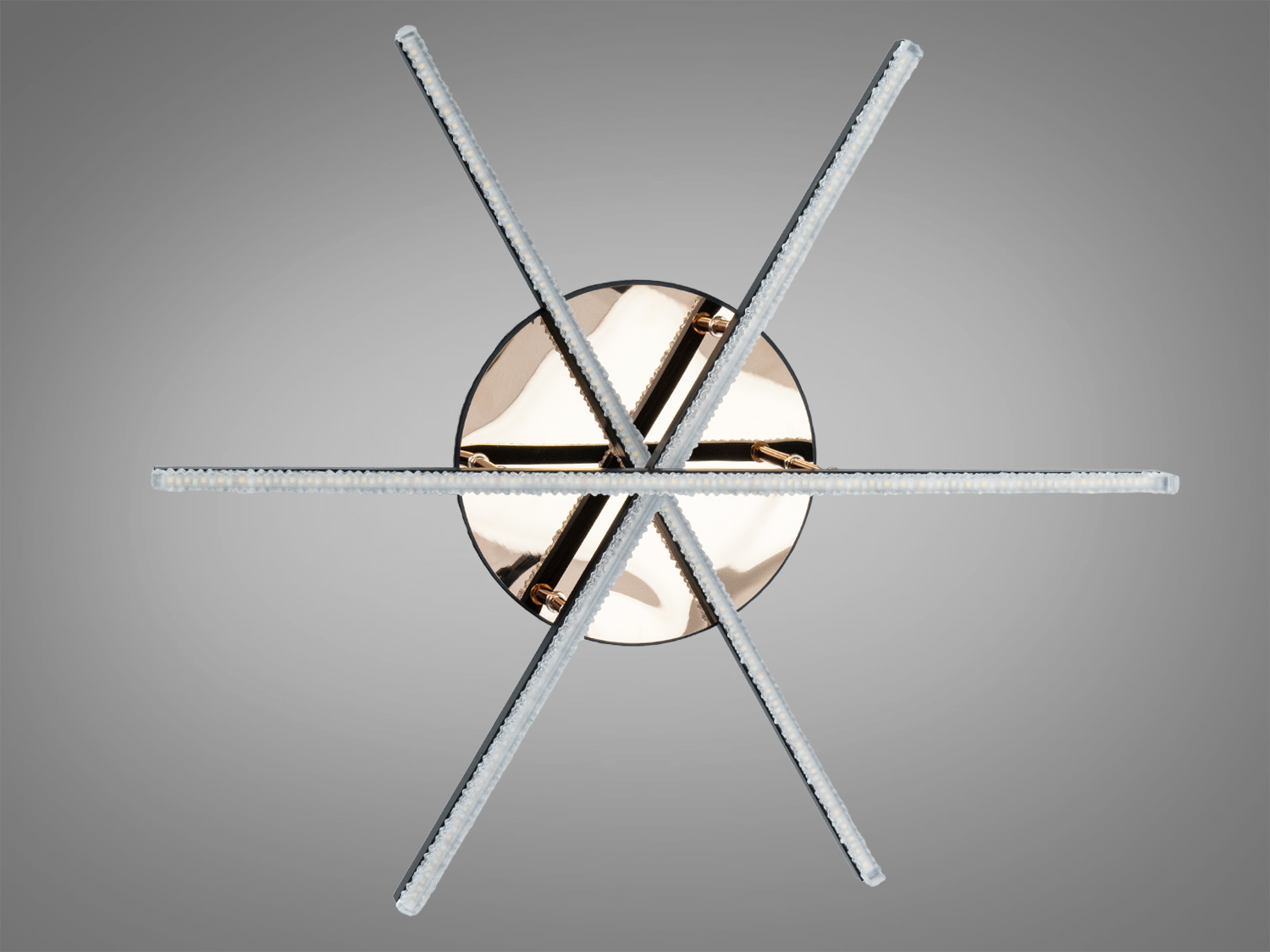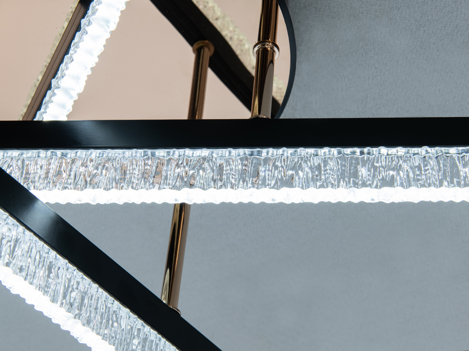 Ця люстра має мінімалістичний геометричний дизайн, який чудово впишеться в інтер'єр з низькими стелями, не перевантажуючи простір. Акрилові вставки розсіюють світло, роблячи його комфортним для очей.
