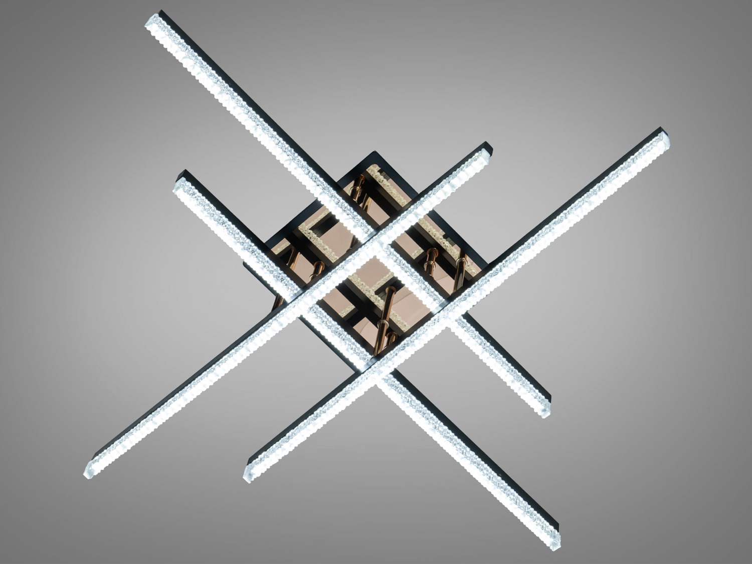 • Геометричний дизайн з перехресними LED-планками для сучасних стилів.