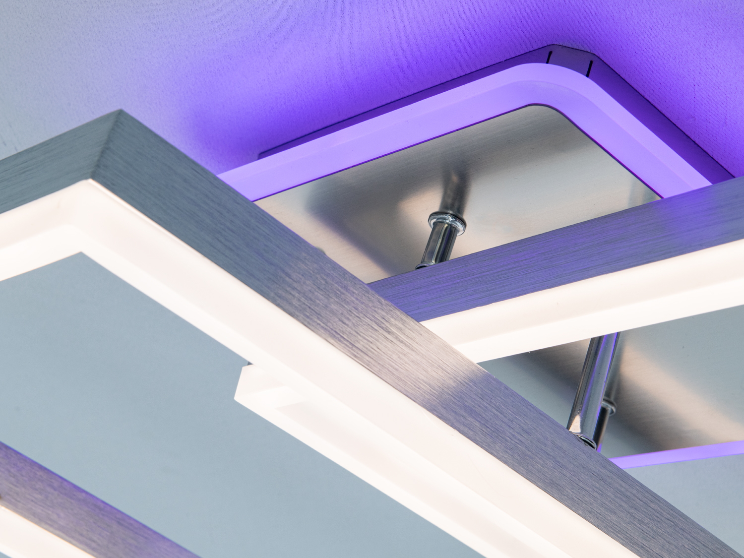 Керування люстрою здійснюється з пульта, що дозволяє вмикати і вимикати світло, перемикати режими підсвітки і регулювати яскравість. Основне світло — біле і яскраве, а декоративне підсвічування доступне в червоних або синіх відтінках для створення настрою.