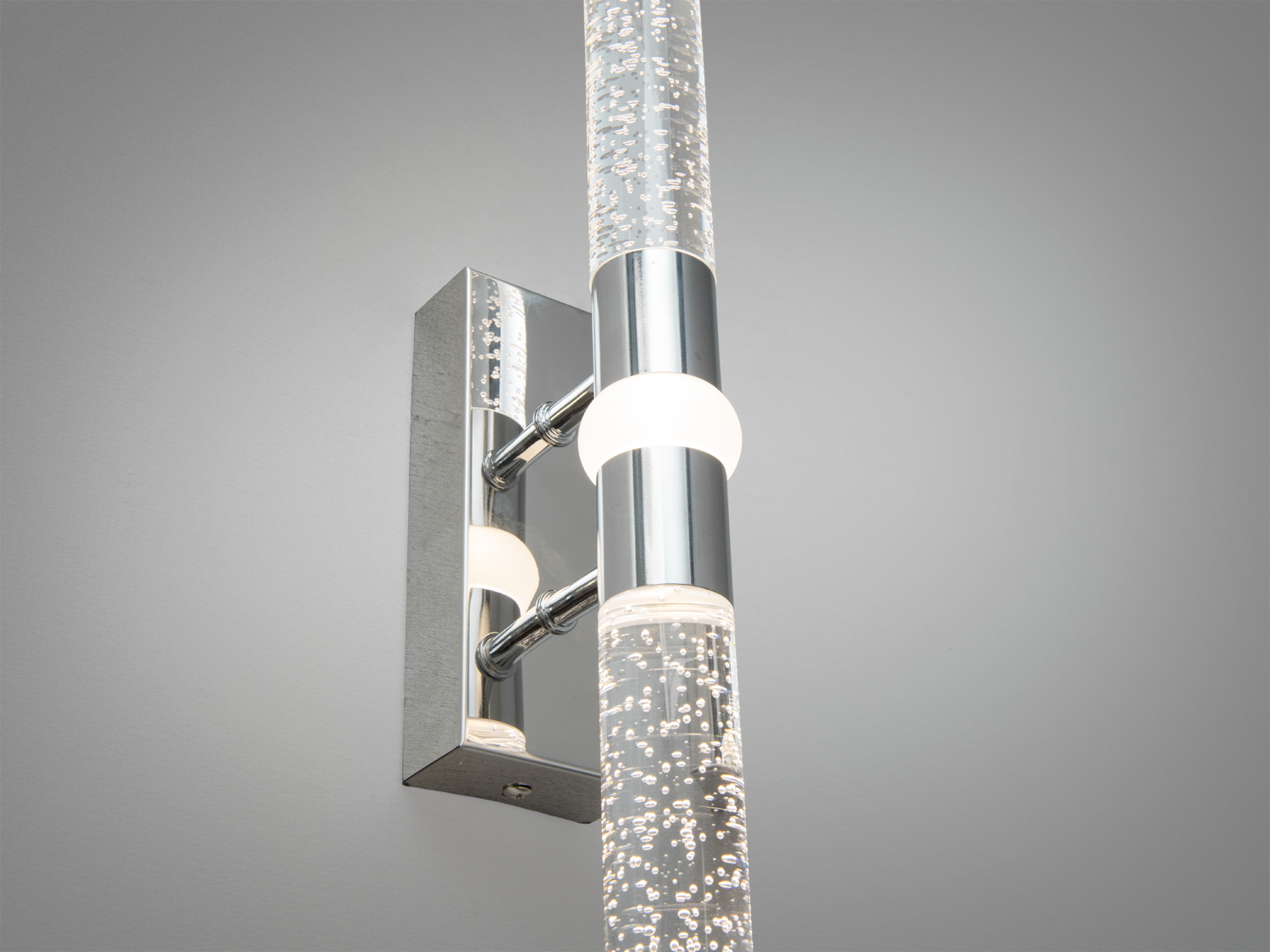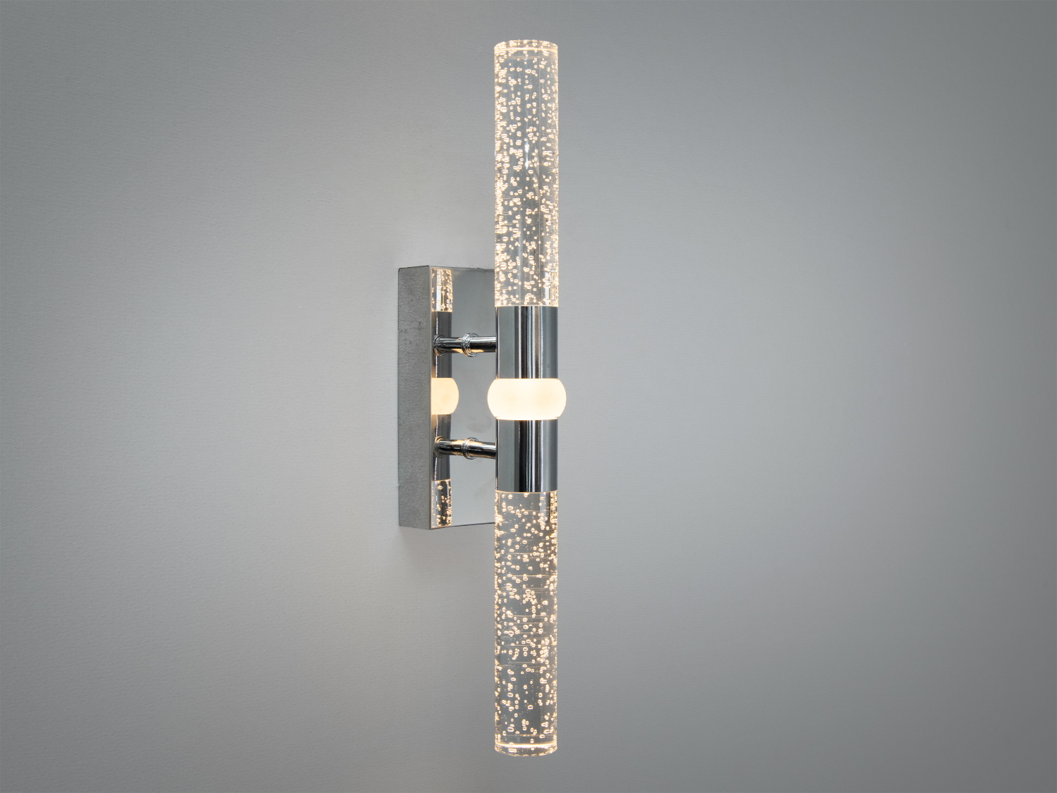 Настінний LED бра 8 Вт у хромовому виконанні пропонує поєднання сучасного дизайну і функціональності. Його стильний мінімалізм робить його відмінним вибором для будь-якого сучасного інтер'єру. Головною особливістю є прозора трубка з бульбашками, що створює унікальний світловий ефект, який додає глибини освітленню.