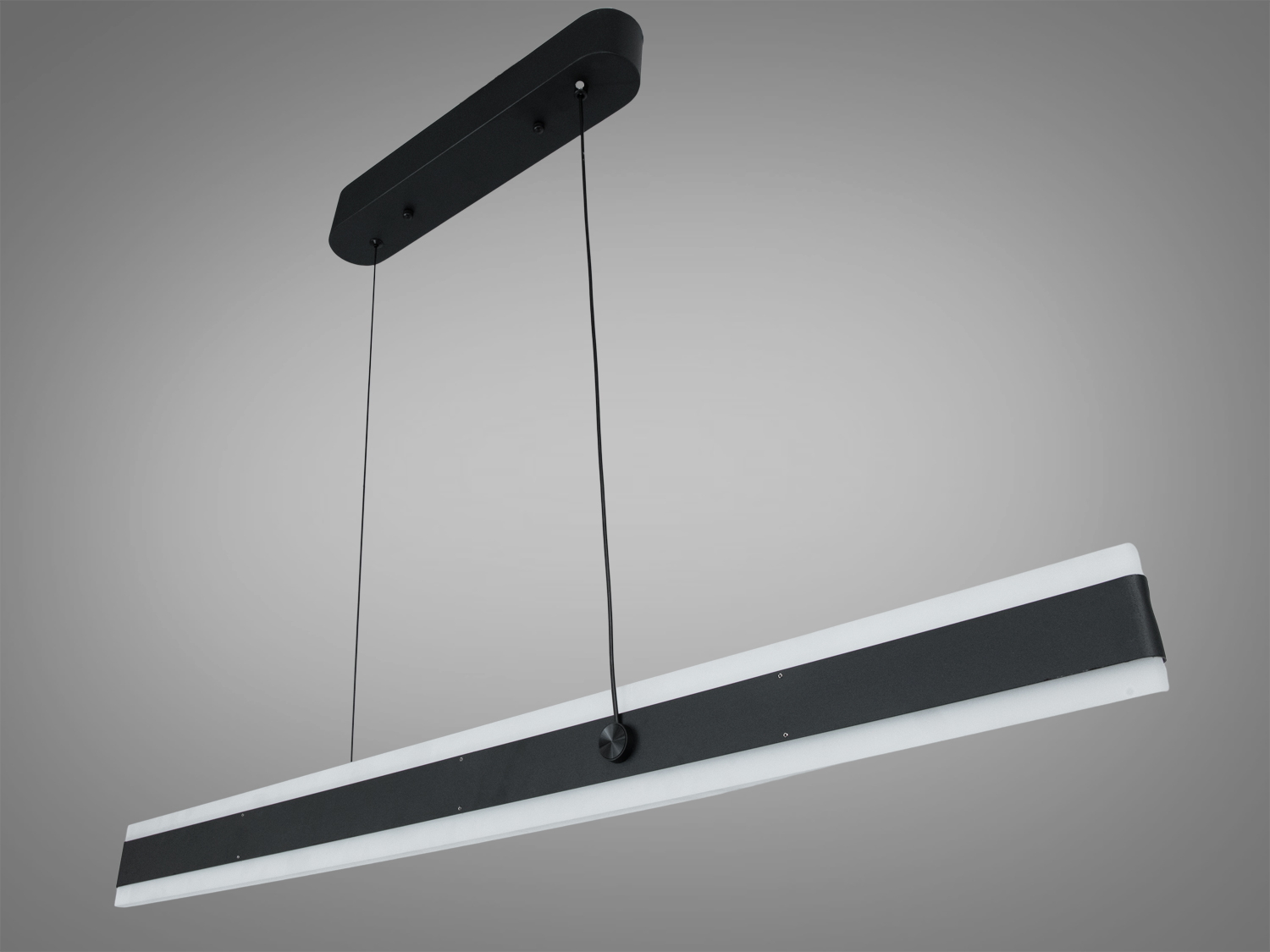 Люстра виконана у лінійній формі, що дозволяє підкреслити робочі зони на кухні або в офісі. Матовий покрив корпусу надає виробу елегантності та лаконічності, гармонійно вписуючись у сучасні інтер'єри.
