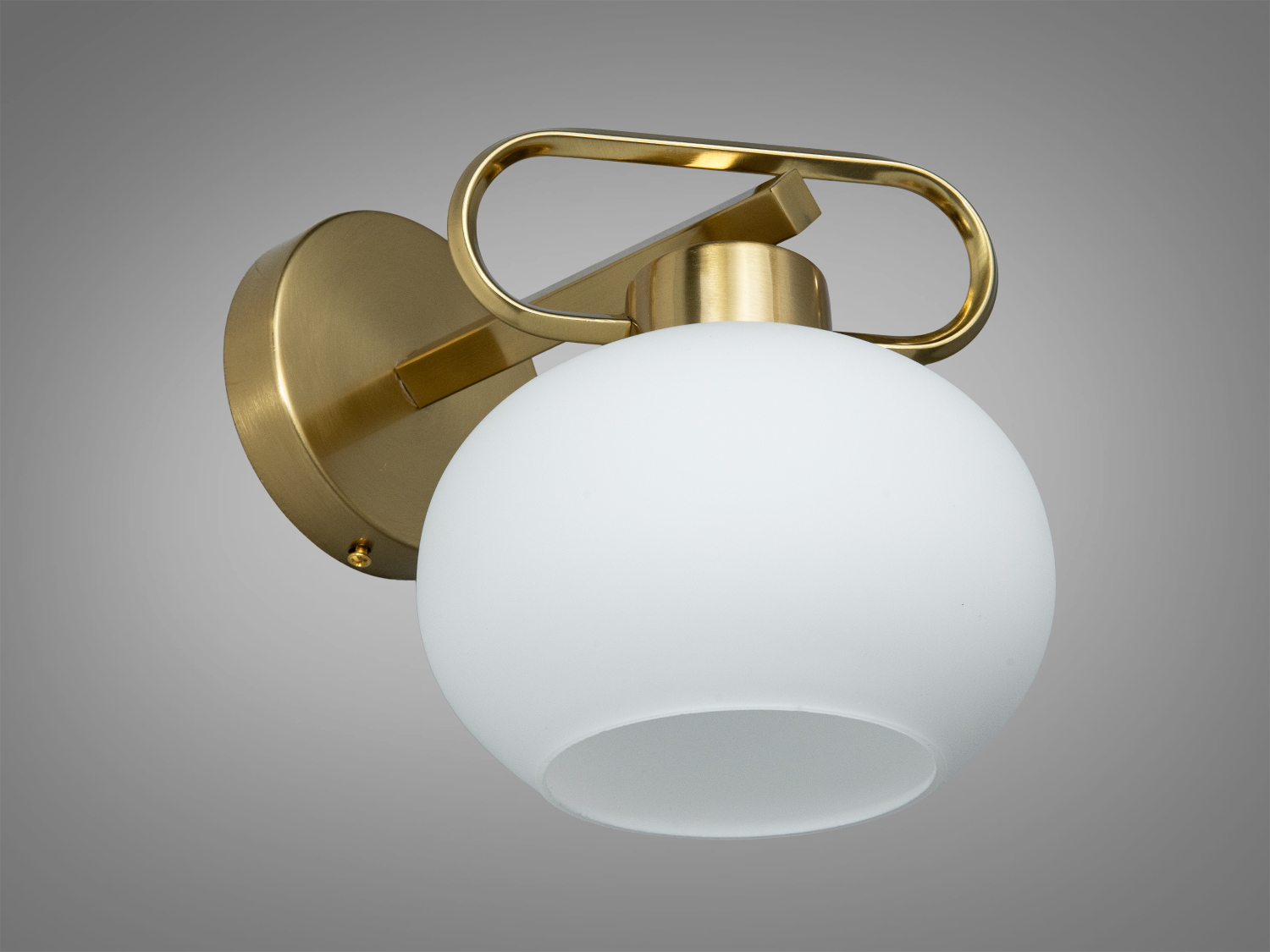 Матовий скляний плафон створює м'яке, розсіяне світло, яке підходить для локального використання біля ліжка, у коридорі або біля дзеркала. Бра сумісне з лампами E27 потужністю до 20 Вт, що дозволяє регулювати інтенсивність світла залежно від вибраної лампи.