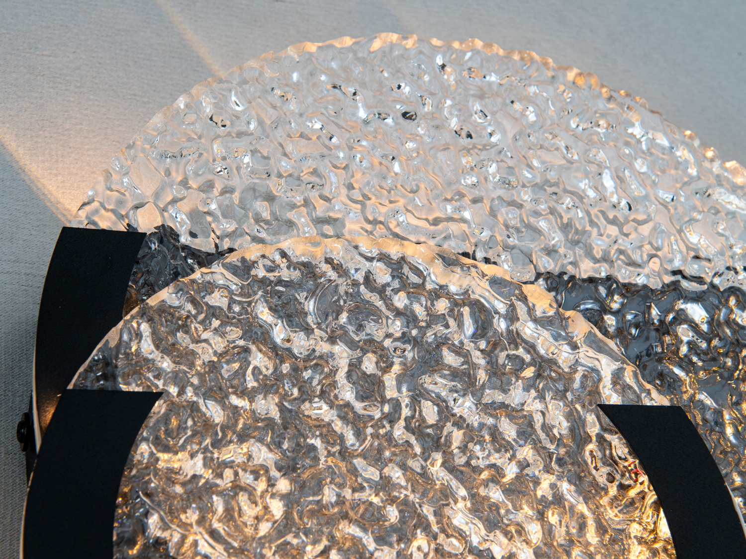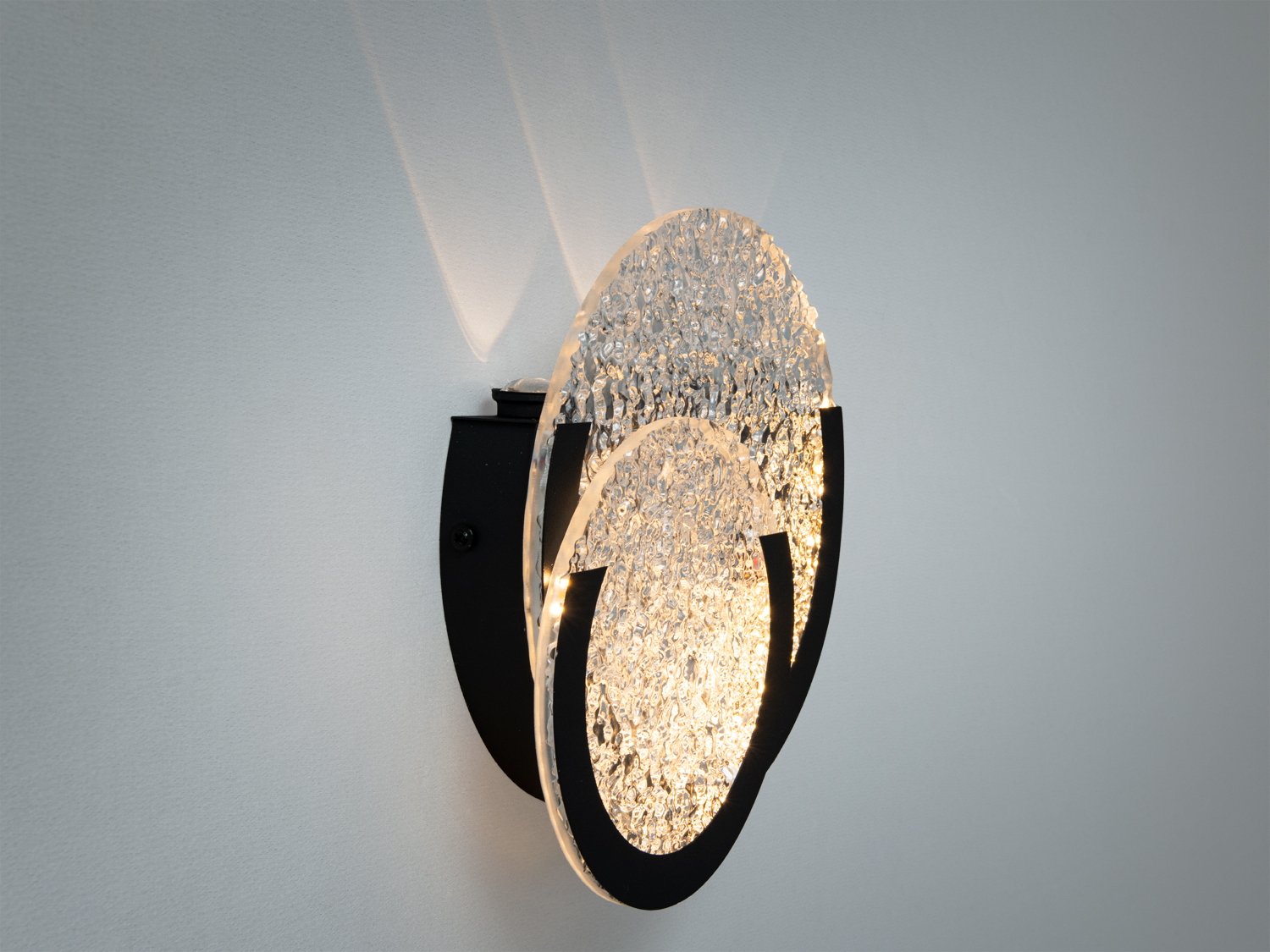 Світильник виконаний з міцного чорного металу, що створює елегантний контраст з текстурованим склом плафону. Таке поєднання матеріалів надає світильнику сучасного вигляду, який легко вписується в різні інтер'єри, включаючи мінімалізм, скандинавський стиль або лофт.