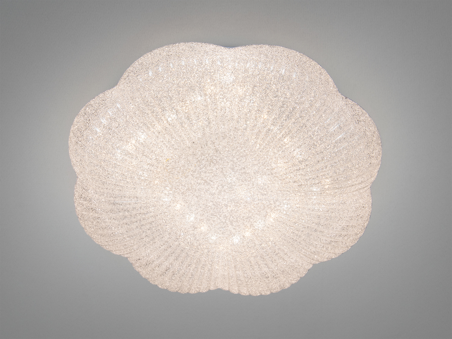 Ця модель має скляний плафон з прозорого рельєфного скла, що дозволяє світлу розподілятися м'яко і зменшує локальні відблиски. Біла основа гармонійно вписується у сучасні інтер'єри, створюючи ефектне, але ненав'язливе освітлення.