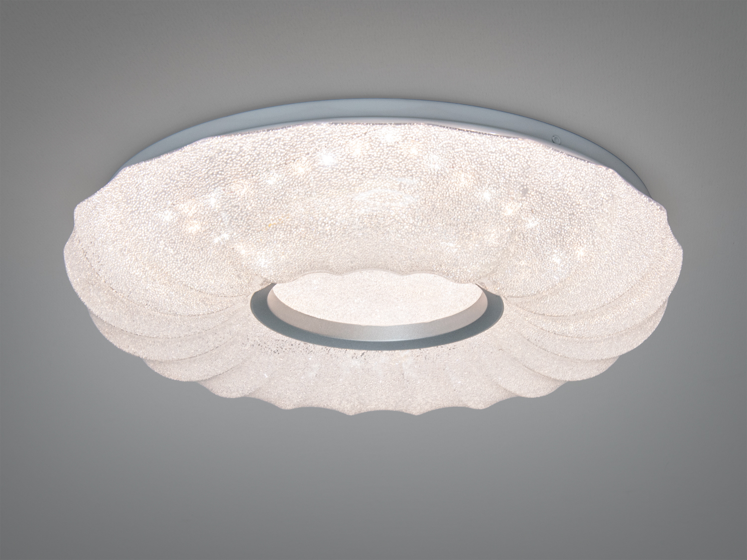 Вбудовані світлодіоди сумарною потужністю 34 Вт забезпечують комфортне загальне освітлення. Світло рівномірно розподіляється по всьому приміщенню, створюючи стабільне освітлення як у центрі, так і по краях. Управління здійснюється за допомогою настінного вимикача.