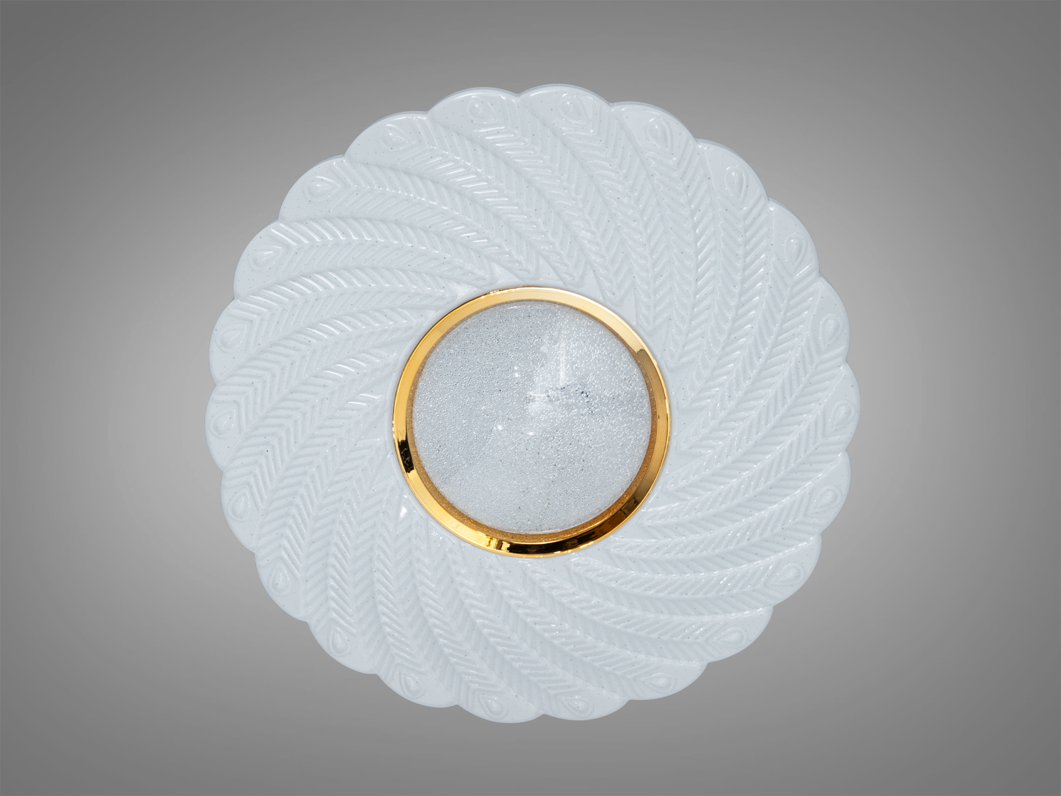 Висота люстри складає 7 см, а діаметр — 49 см, що робить її придатною для приміщень до 20 м². Матове акрилове розсіювання з рельєфним візерунком забезпечує м'яке і комфортне освітлення.