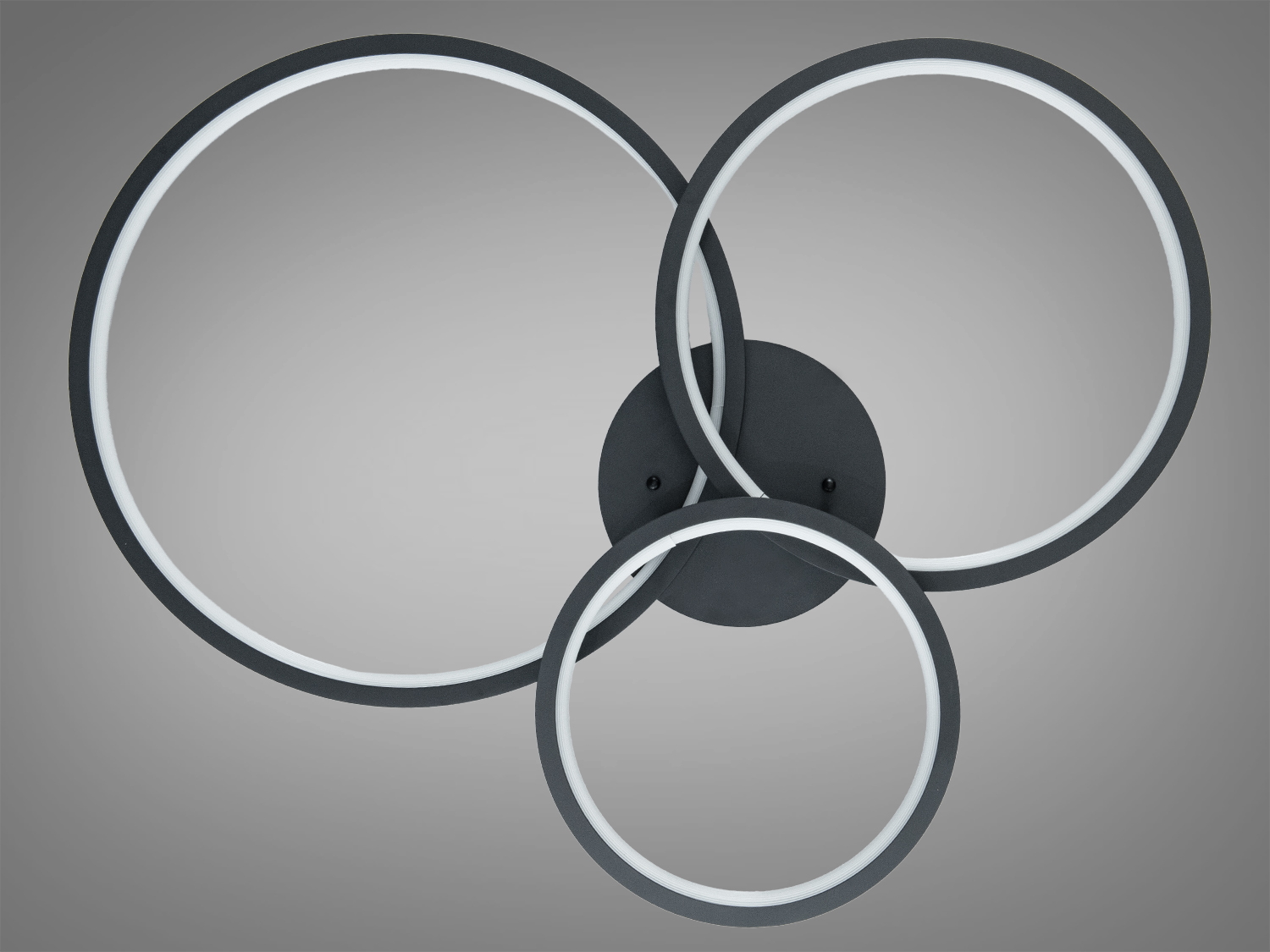 Стельова світлодіодна люстра з трьома кільцями у чорному кольорі — це освітлення для кімнат площею до 12–14 м². Сучасний дизайн і зручне керування роблять її чудовим вибором для будь-якої кімнати. LED-модуль 84W забезпечує яскраве рівномірне світло, а пульт дистанційного керування з димером дозволяє налаштовувати інтенсивність під будь-які потреби, від робочої концентрації до м'якого вечірнього.