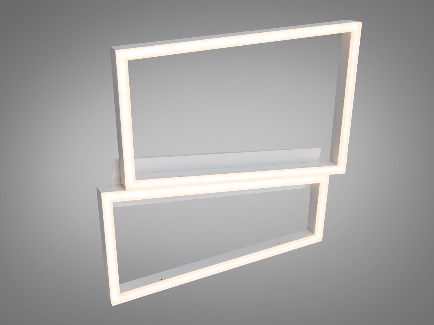 Конструкція з двох прямокутних рамок додає сучасності вашому інтер'єру, підкреслюючи мінімалістичний стиль. Металевий каркас гарантує надійність і довговічність, а акрилові світлорозсіювальні елементи забезпечують м'яке і приємне освітлення.