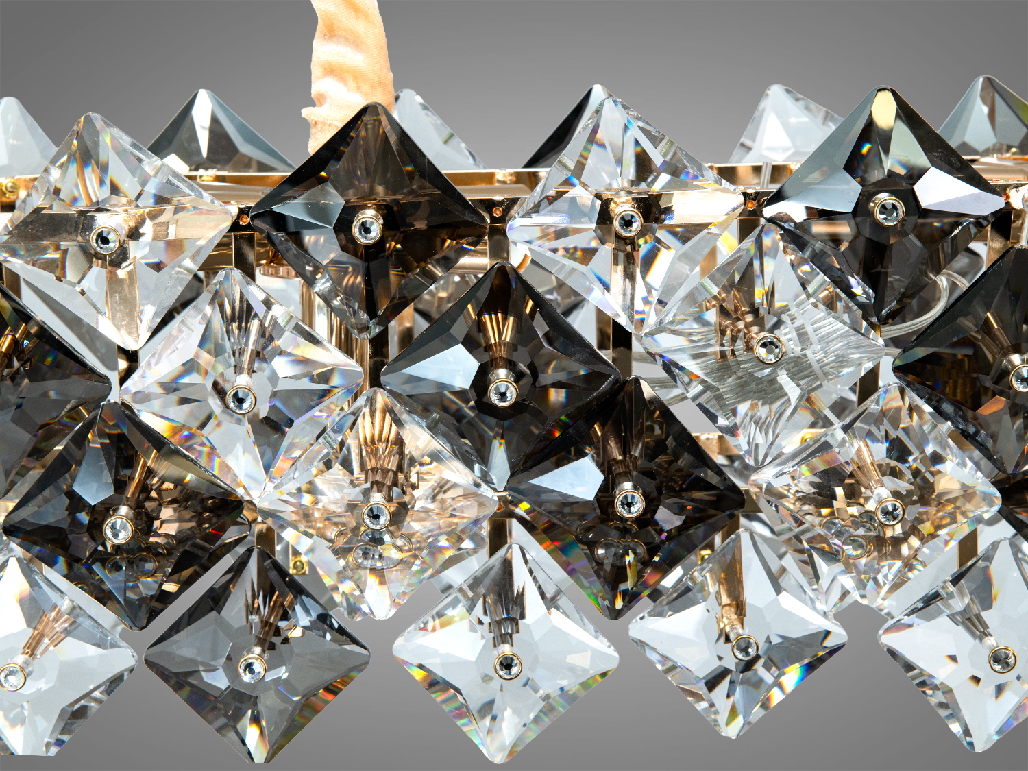Матеріали, використані в люстрі, відрізняються довговічністю. Металеві елементи мають якісну обробку, а кристали – чіткі грані для виразної гри світла. Догляд за люстрою не потребує зусиль: достатньо періодично протирати її сухою ганчіркою та делікатно очищувати кристали.
