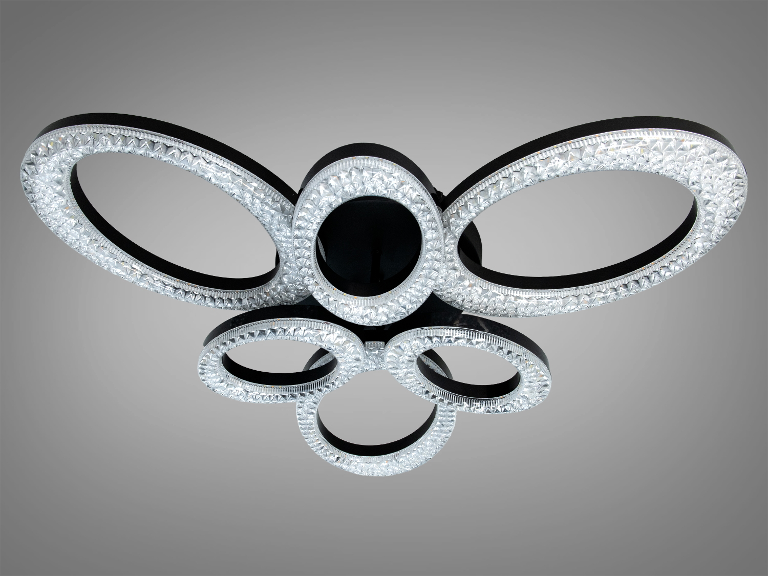 Світлодіодна стельова люстра 6 кілець 80Вт чорна з пультом для вітальні 5607/3+3BK