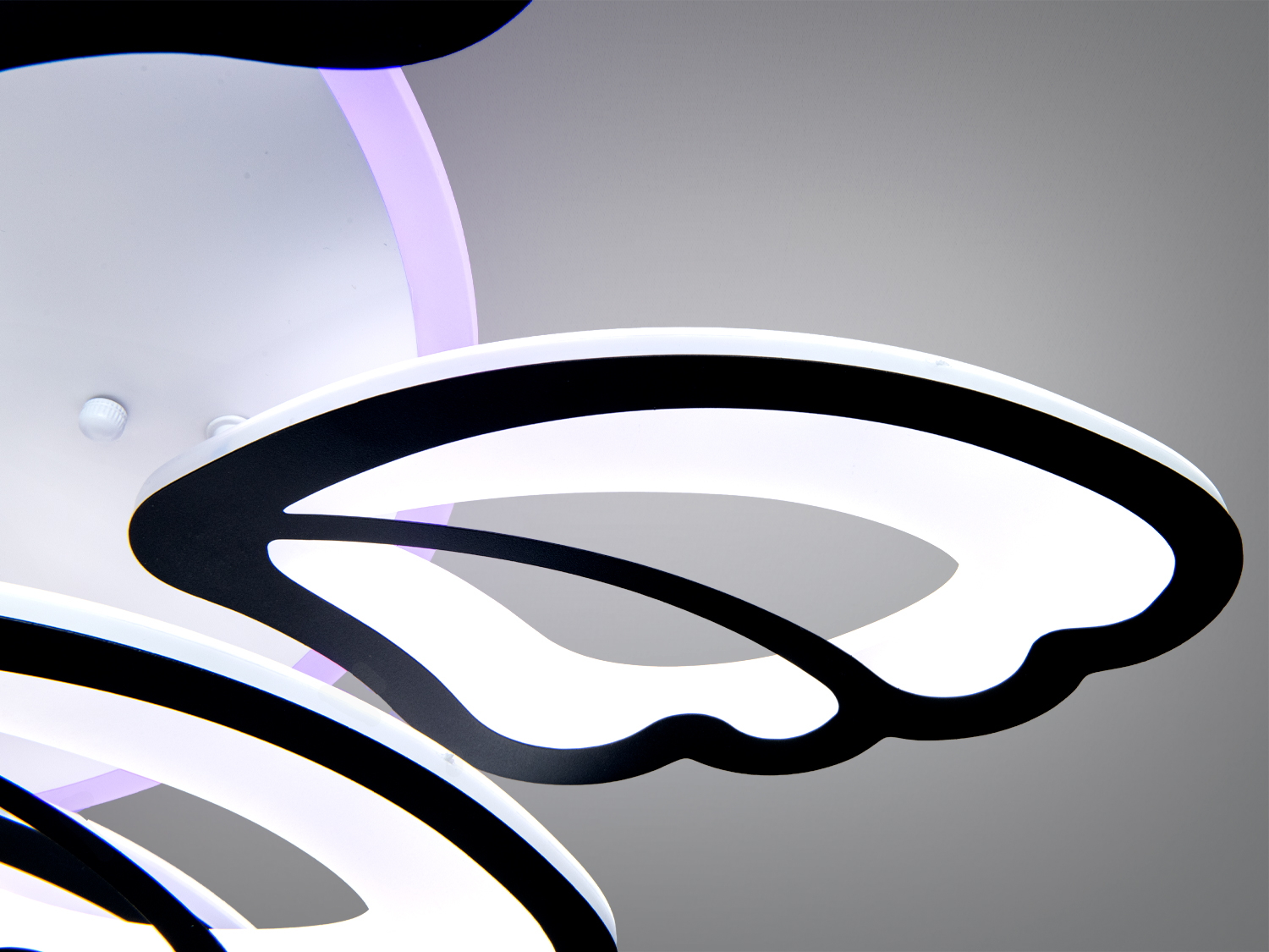 Ця люстра оснащена дев'ятьма світловими модулями і декоративною підсвіткою основи, що дозволяє створити насичене основне та акцентне освітлення. Матові розсіювачі забезпечують м'яке та рівномірне світло без відблисків.