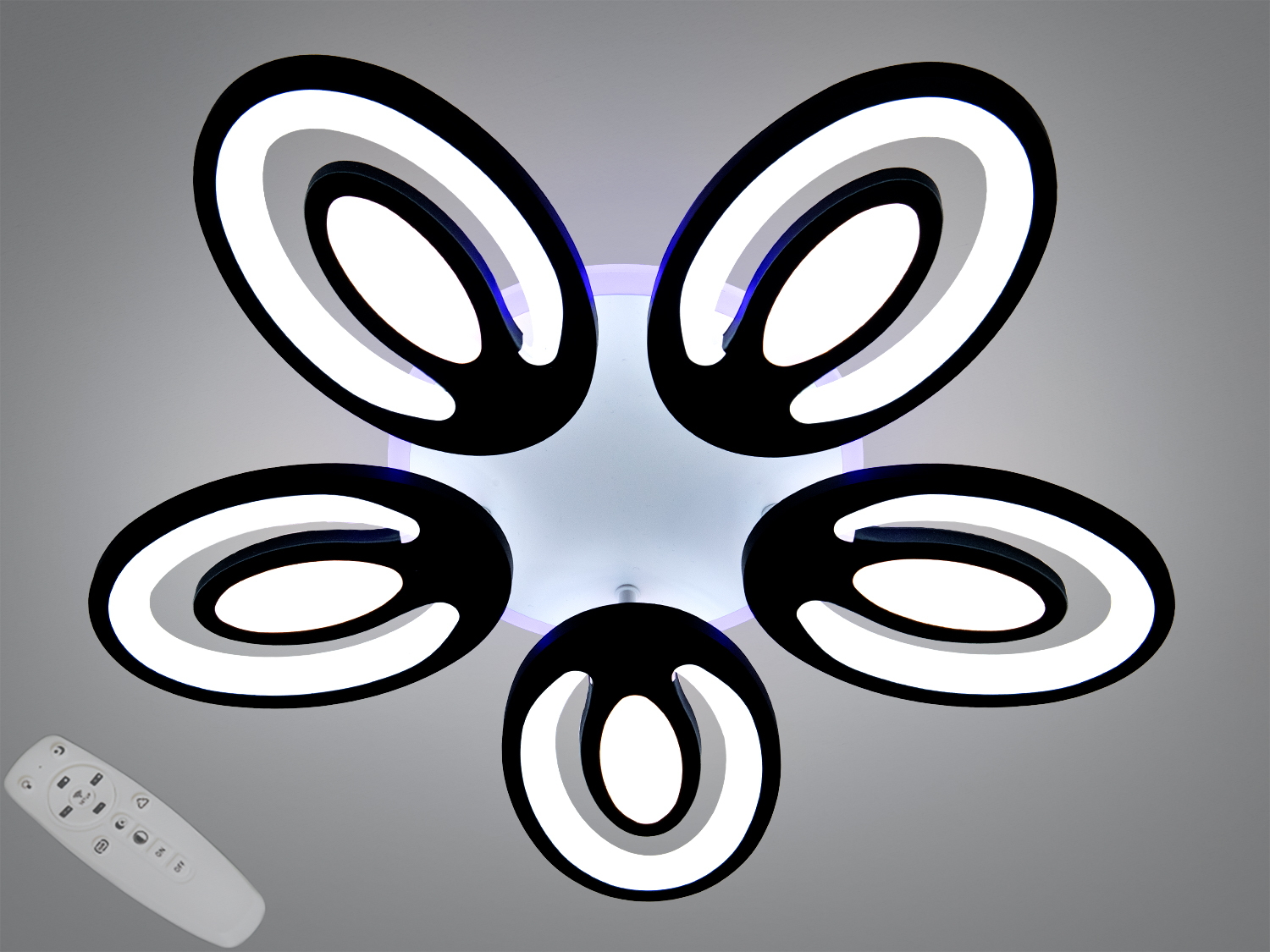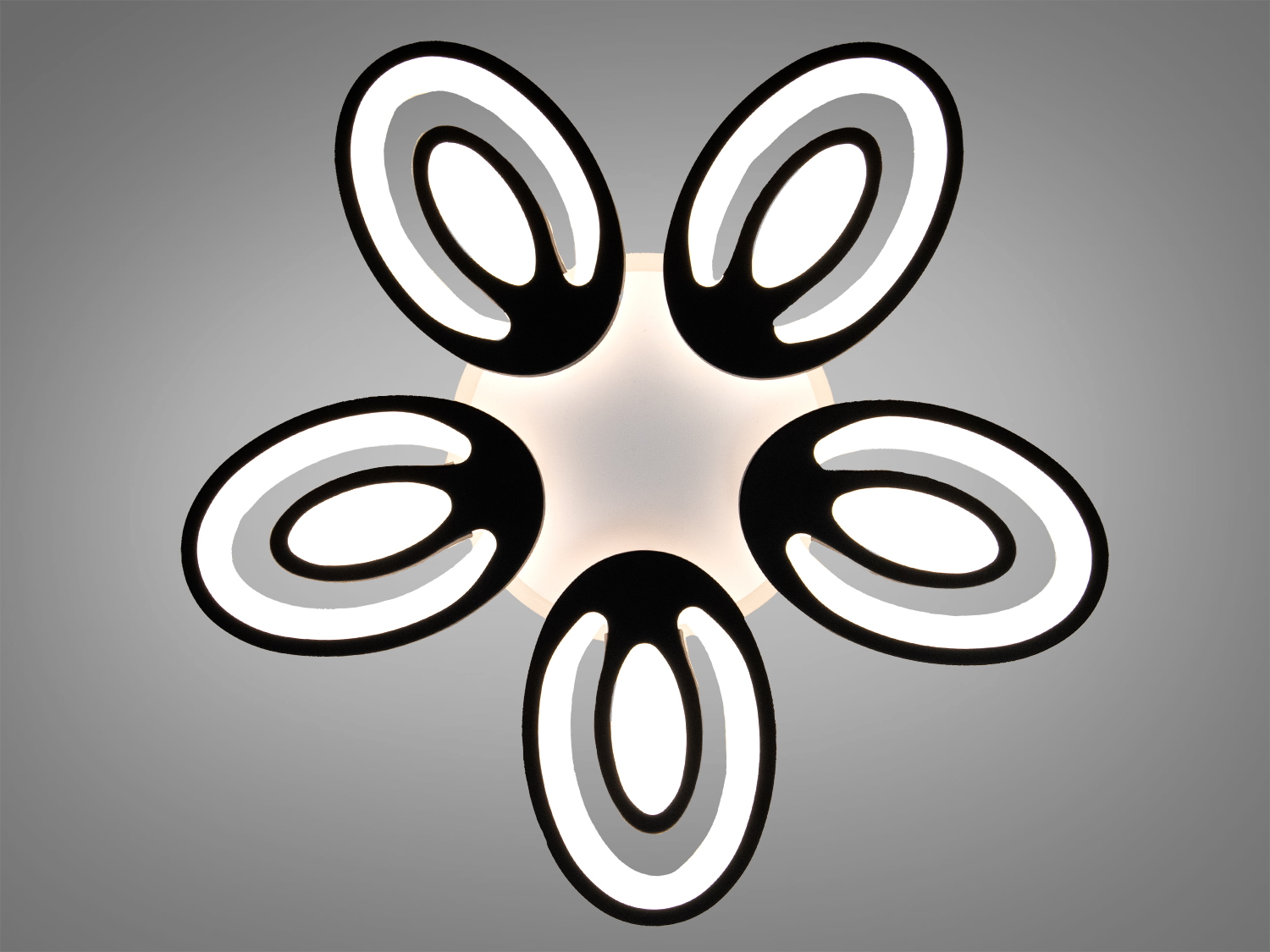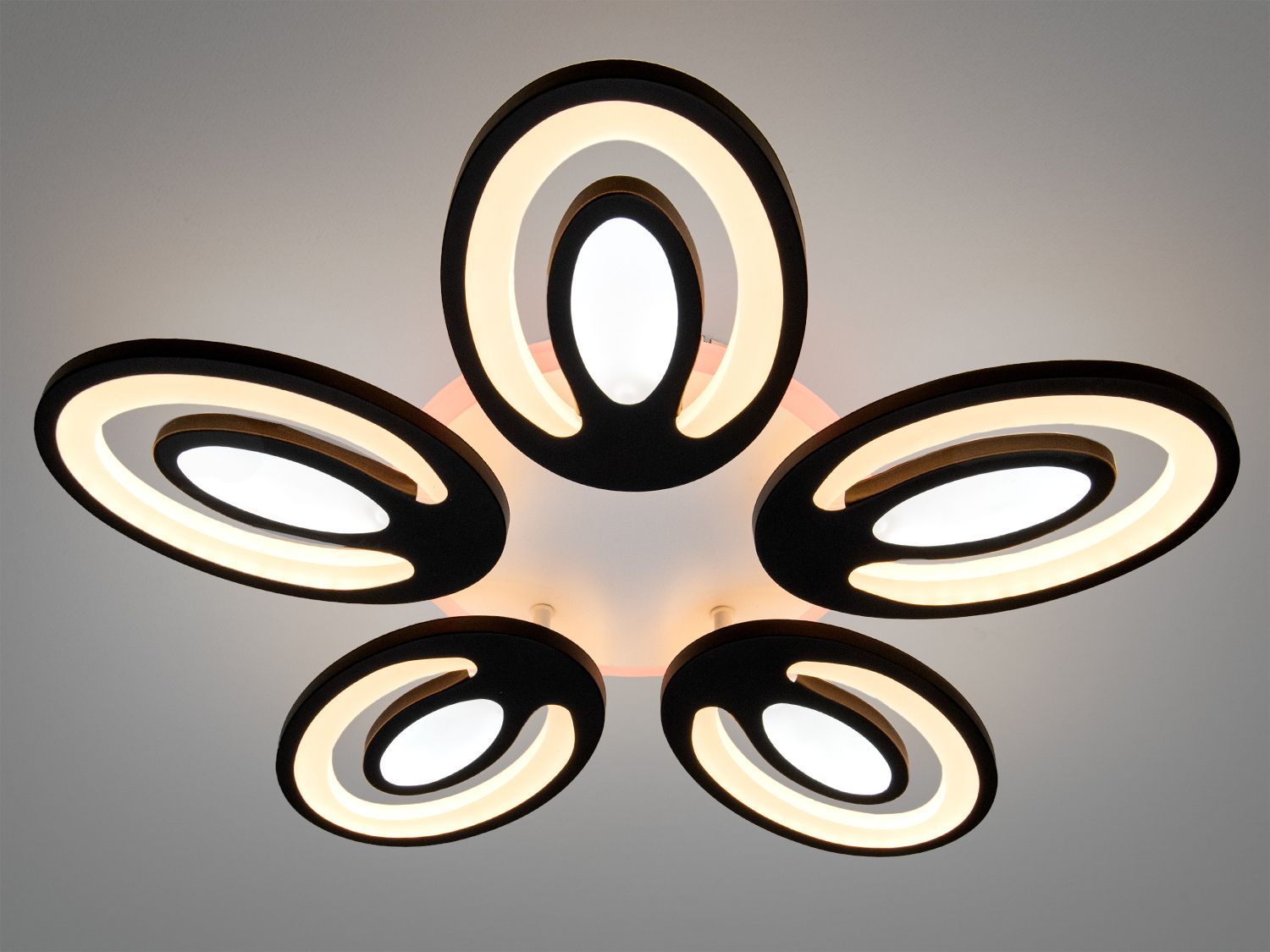 Люстра включає в себе 5 овальних модулів, що створюють витончений квітковий силует. Це дозволяє рівномірно розподіляти світло по всій кімнаті, створюючи комфортне освітлення для вітальні, спальні або кухні.