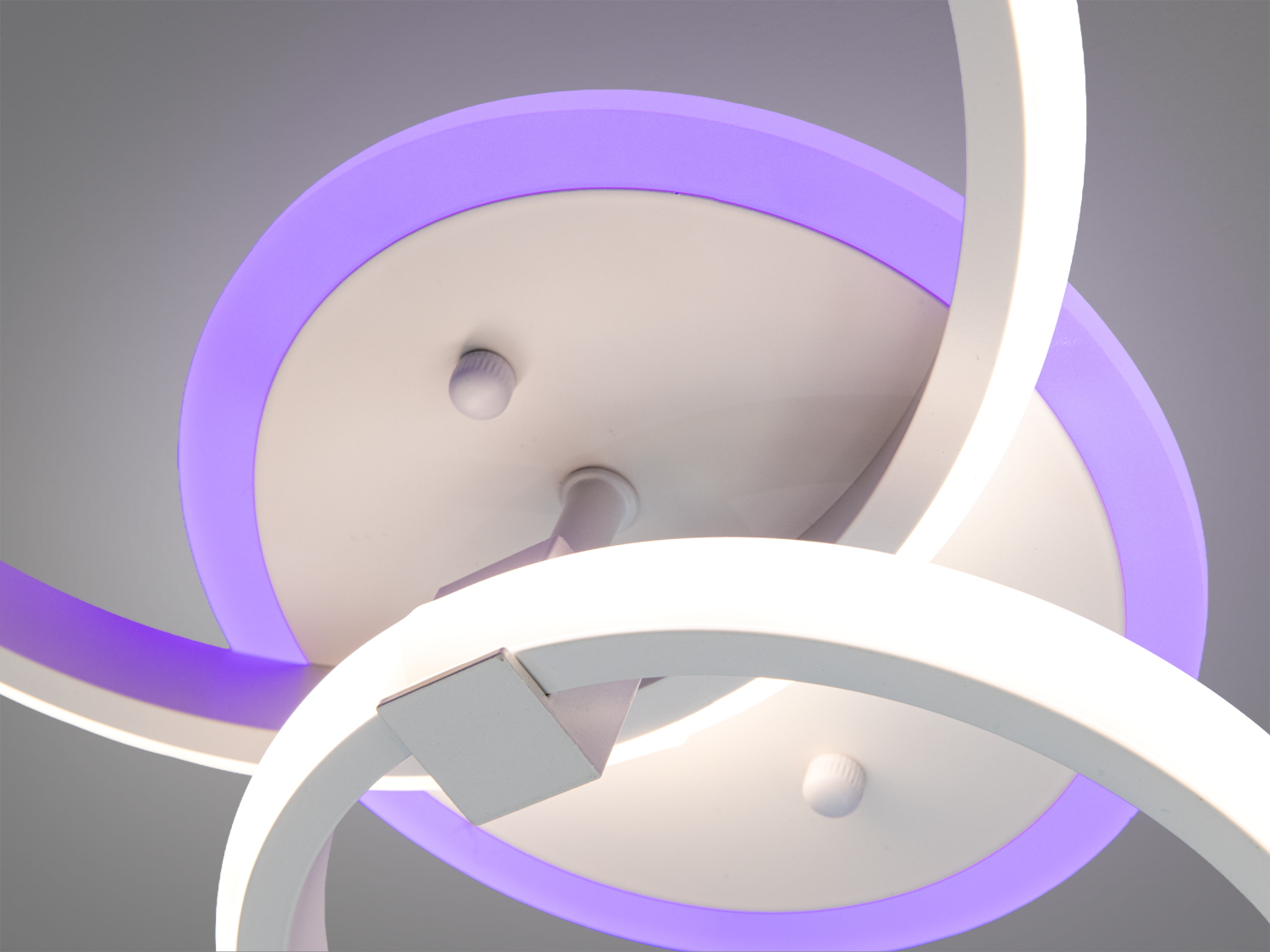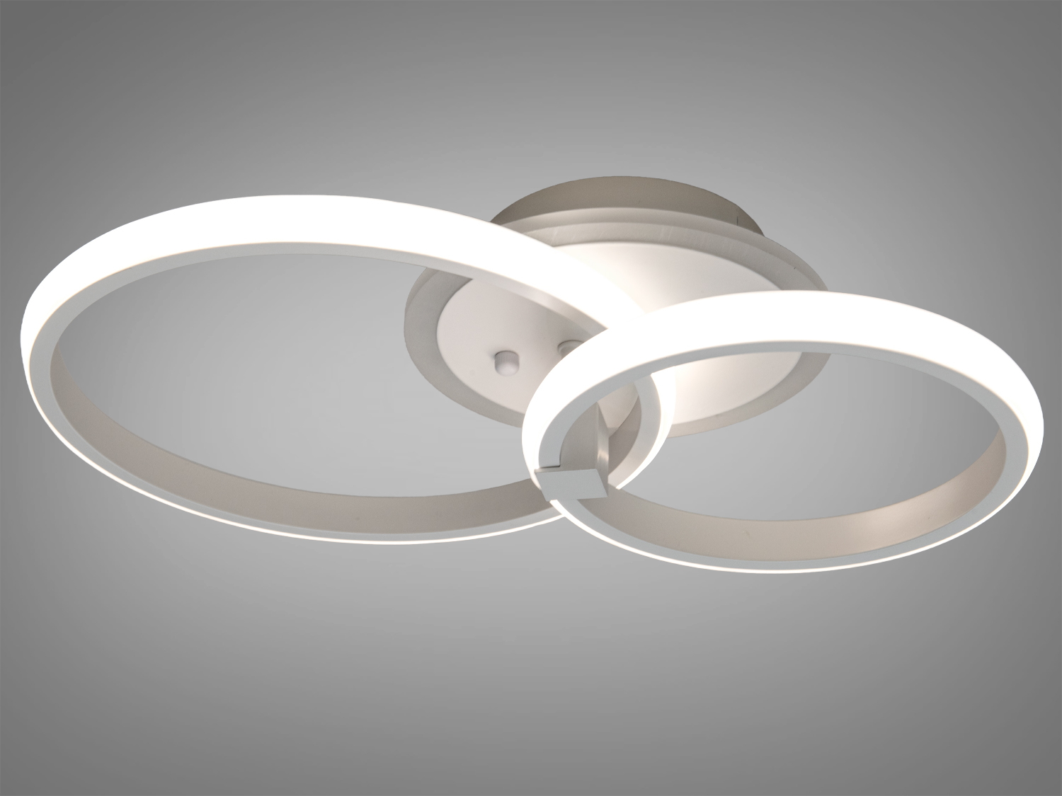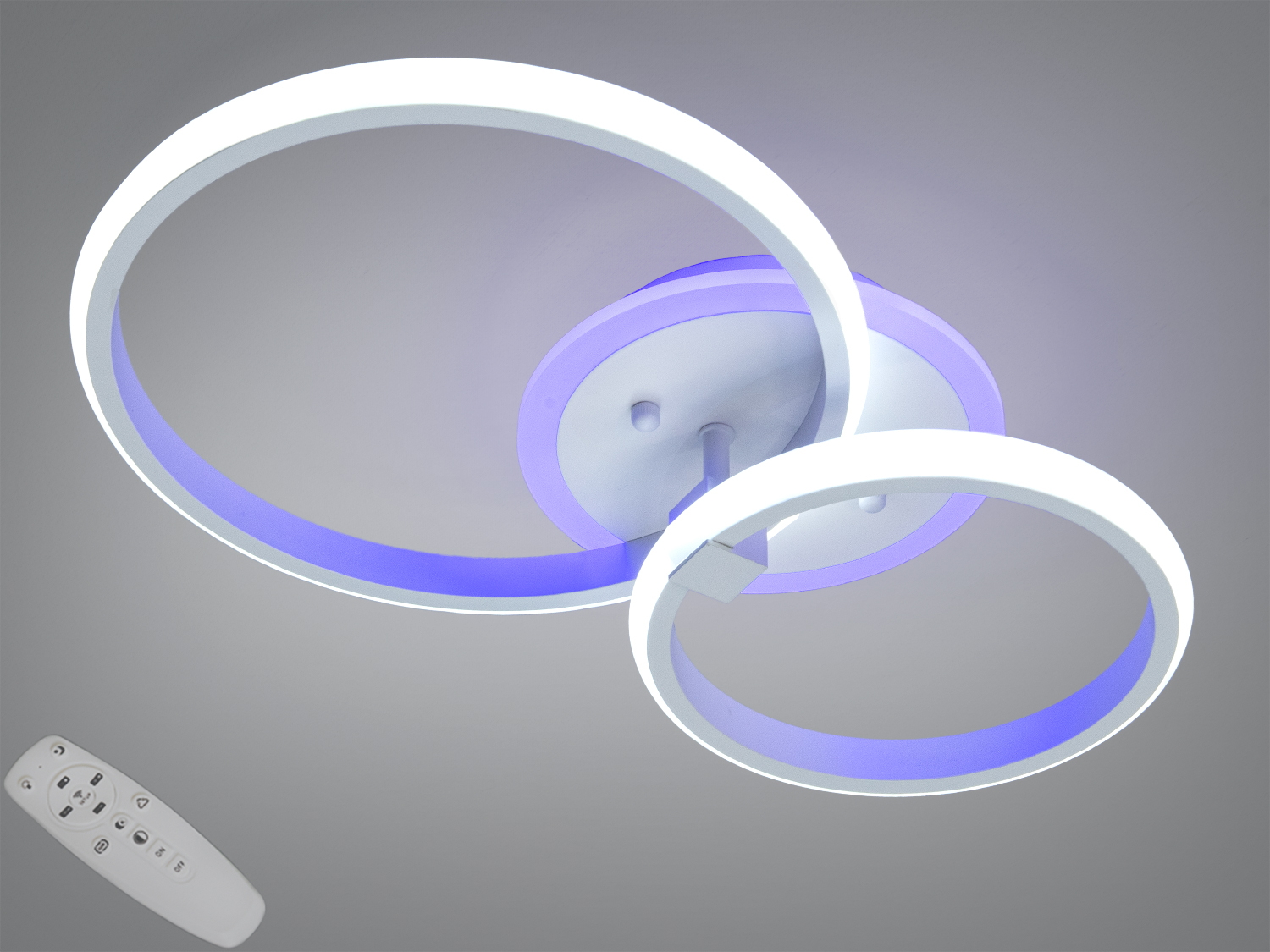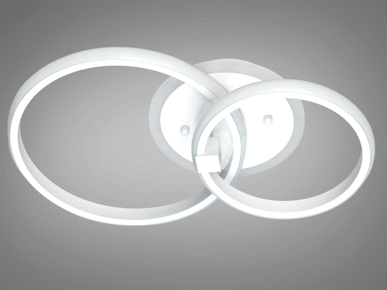 Світлодіодна стельова люстра Diasha — це сучасне рішення для вашого інтер'єру. Вона виконана в елегантному білому кольорі та оснащена двома кільцями, що створюють м'який і рівномірний світловий потік. Ця модель підходить для невеликих приміщень, таких як спальня, вітальня або робочий кабінет.