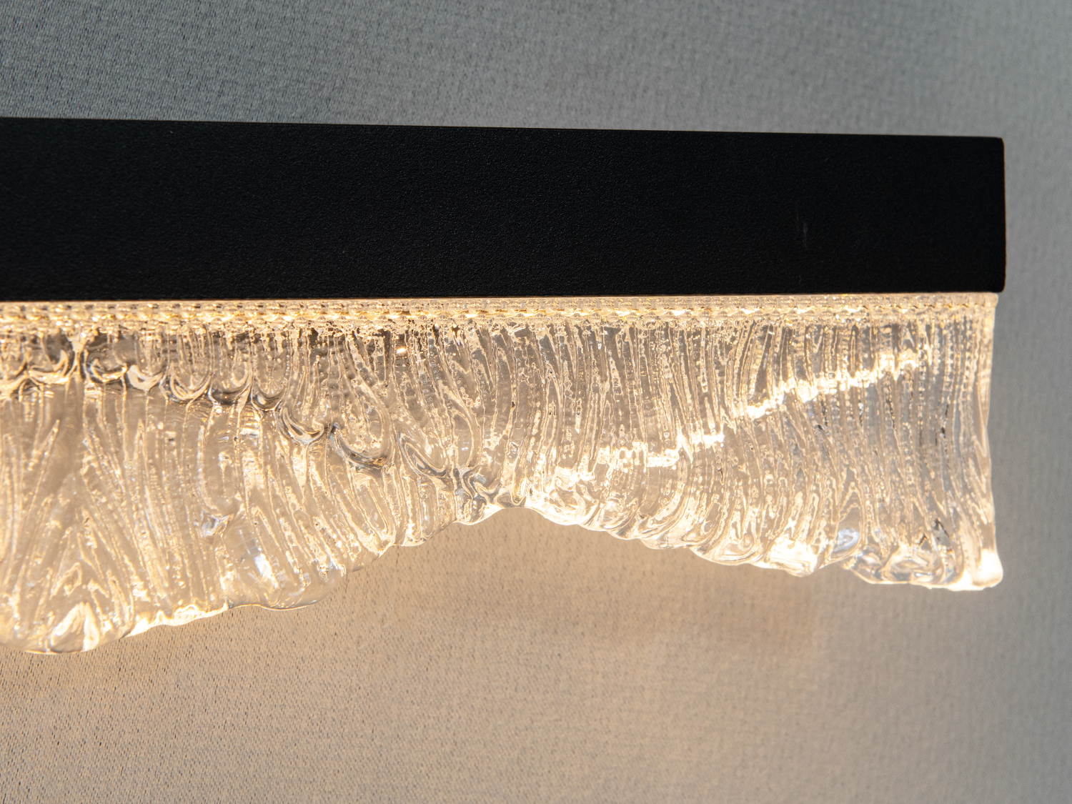 Настінне LED бра-планка потужністю 16 Вт — це стильне рішення для сучасного інтер'єру. Цей світильник виконаний у чорному кольорі з елегантним матовим покриттям, що робить його ідеальним акцентом для будь-якої кімнати. Використання прозорого скла з хвилястою текстурою не лише пом'якшує світло, але й додає унікальності зовнішньому вигляду.